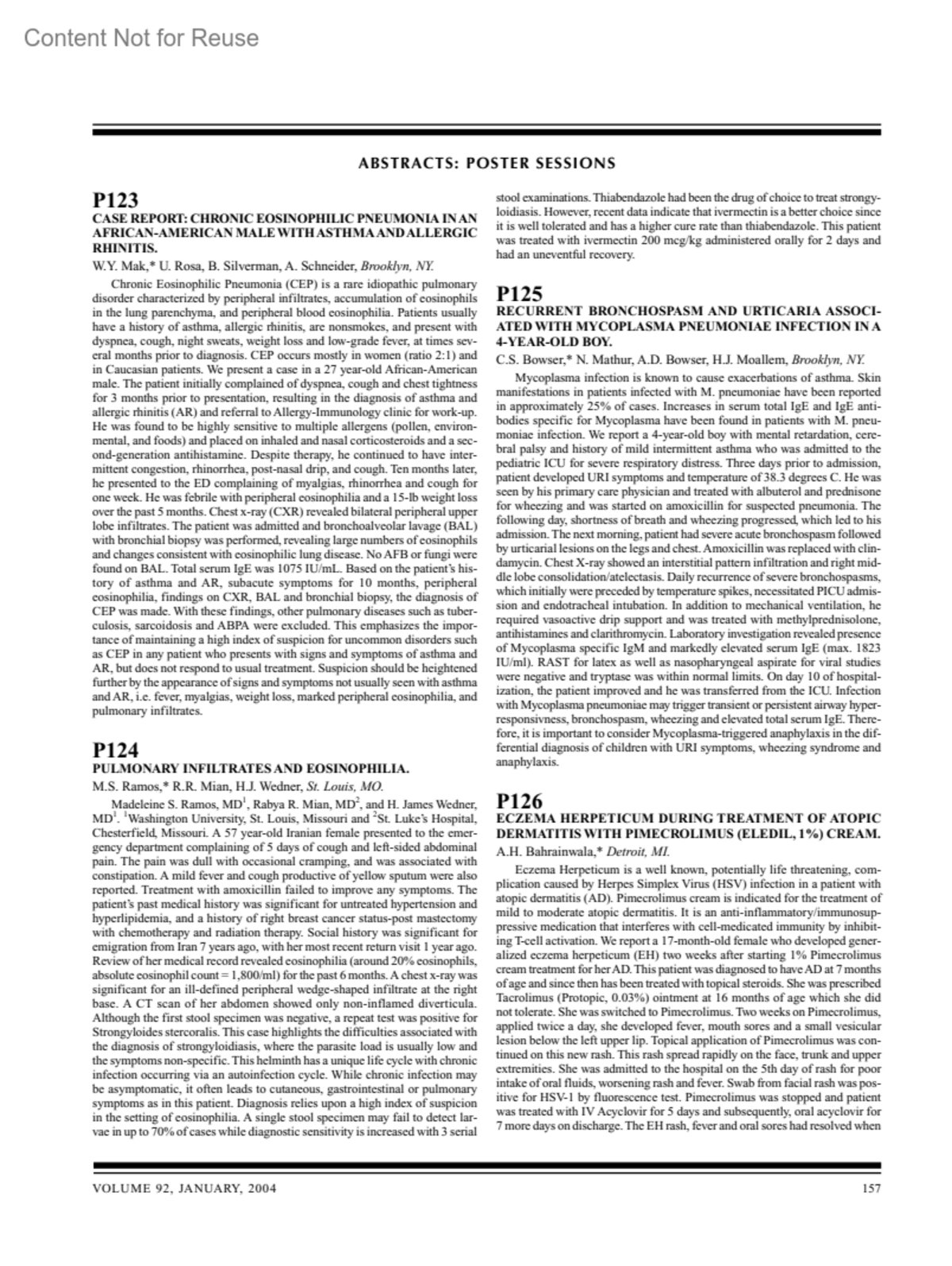 Annals of Allergy, Asthma, & Immunology 92(1):p 157, January 2004.