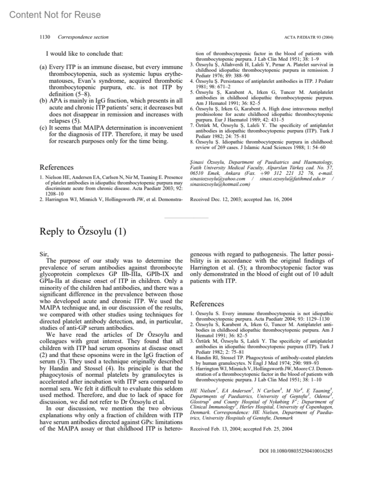 Correspondence: HE Nielsen, Department of Paediatrics, University Hospitals of Gentofte, Denmark