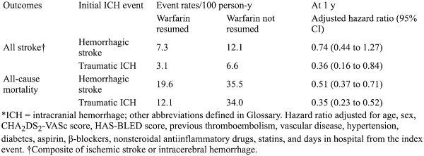 Resuming warfarin after intracranial hemorrhage in patients with AF was linked to reduced mortality