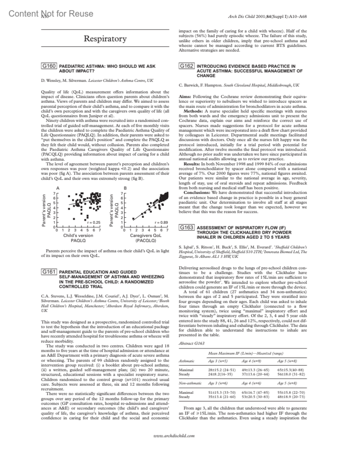 Archives of Disease in Childhood 84:p A50, April 2001.