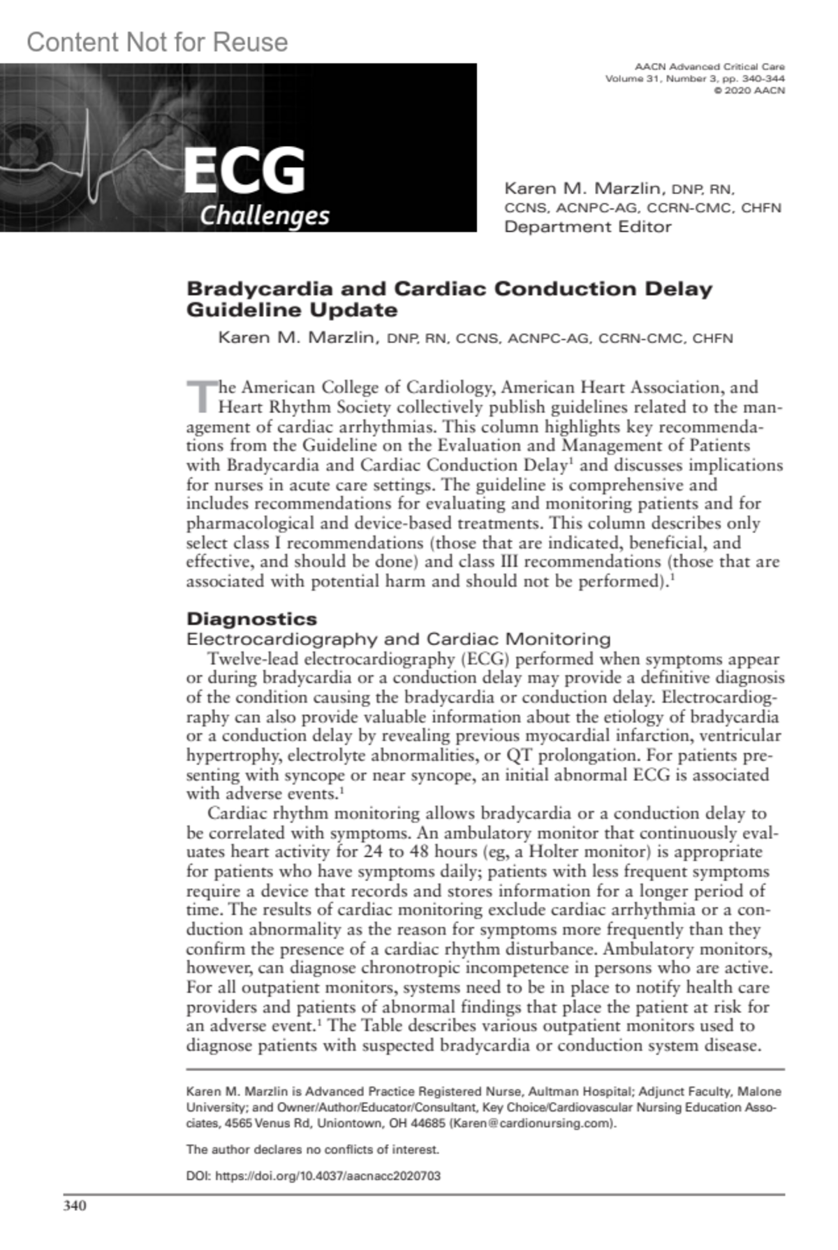 Bradycardia and Cardiac Conduction Delay Guideline Update