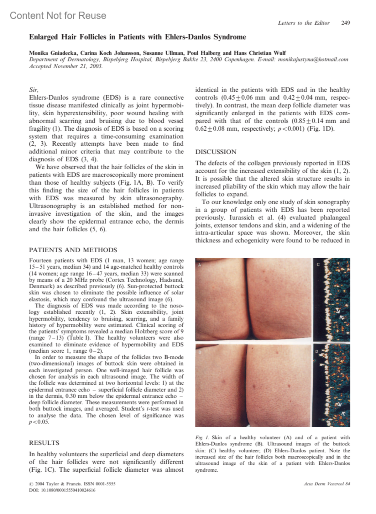Enlarged Hair Follicles in Patients with Ehlers-Danlos Syndrome
