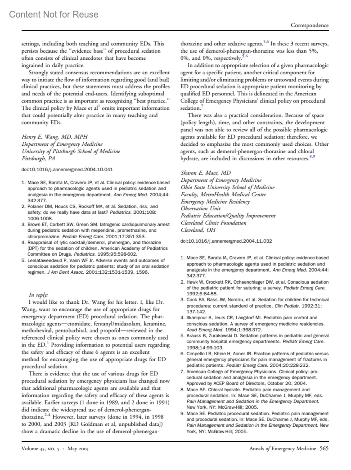 Annals of Emergency Medicine 45(5):p 565, May 2005.