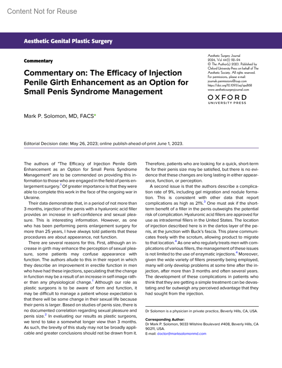 Aesthetic Surgery Journal (ASJ) 44(1):p 92-94, January 2024. | DOI: 10.1093/asj/sjad168