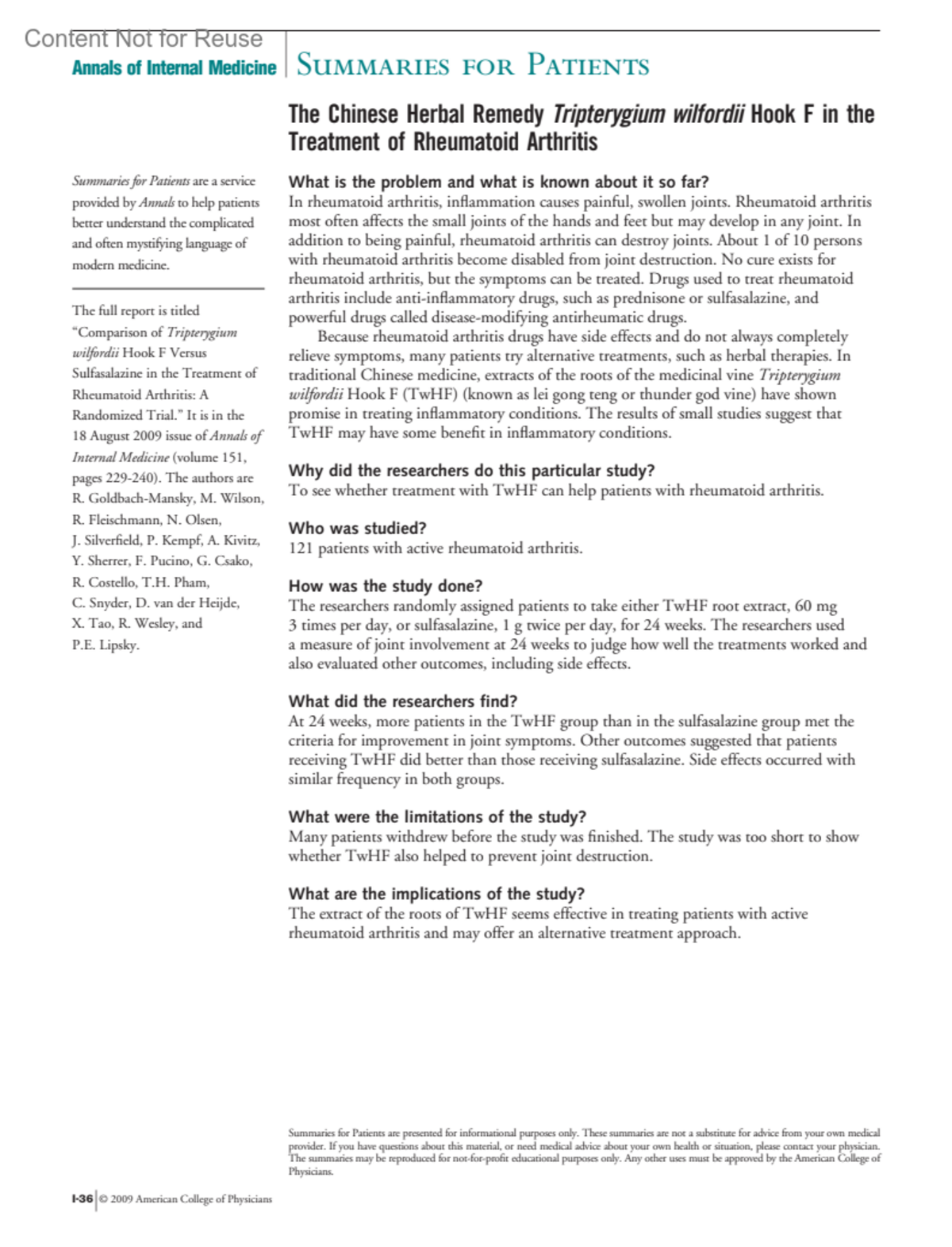 Annals of Internal Medicine 151(4):p 36, August 18, 2009.