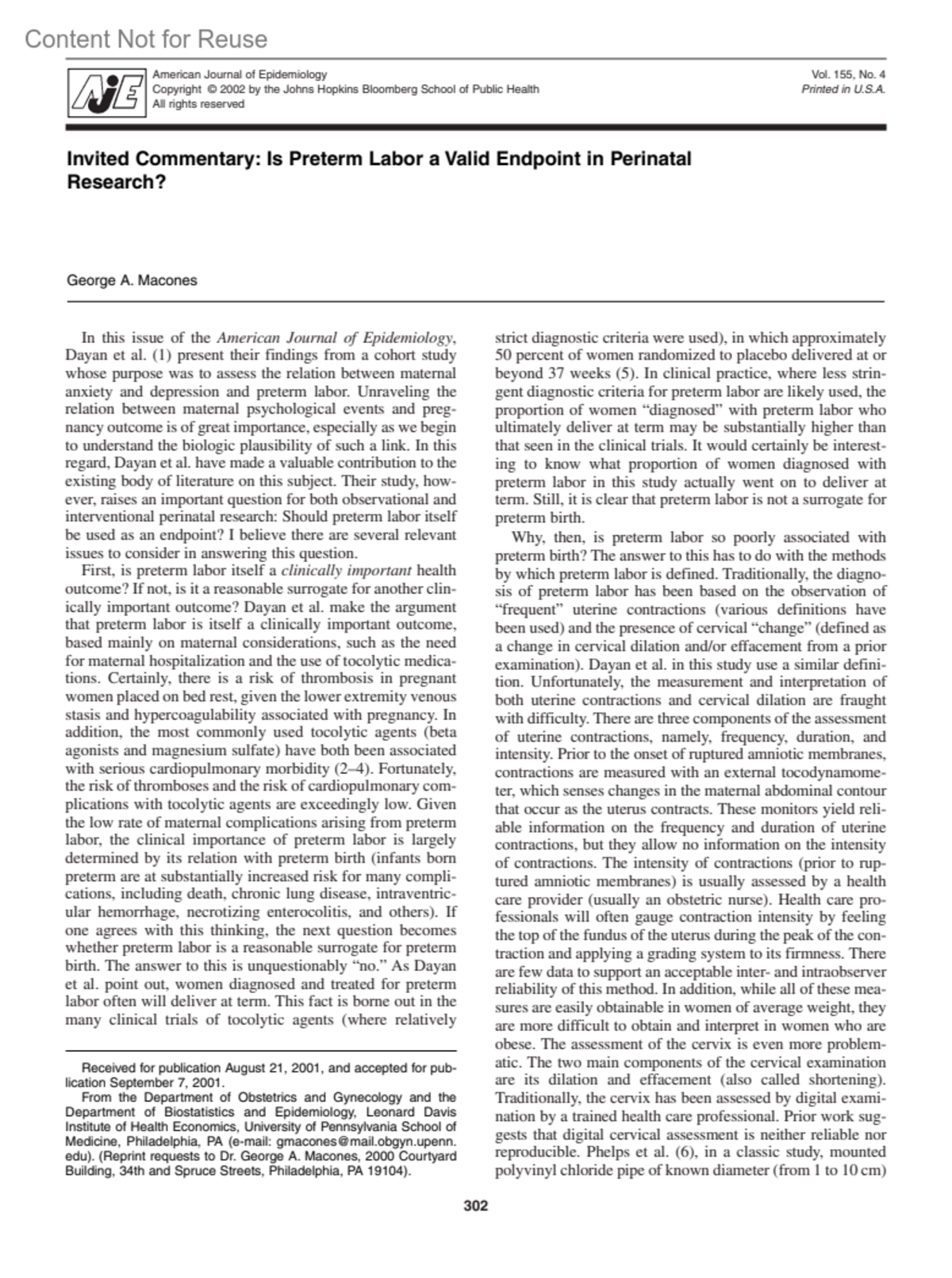 American Journal of Epidemiology 155(4):p 302-303, February 15, 2002.