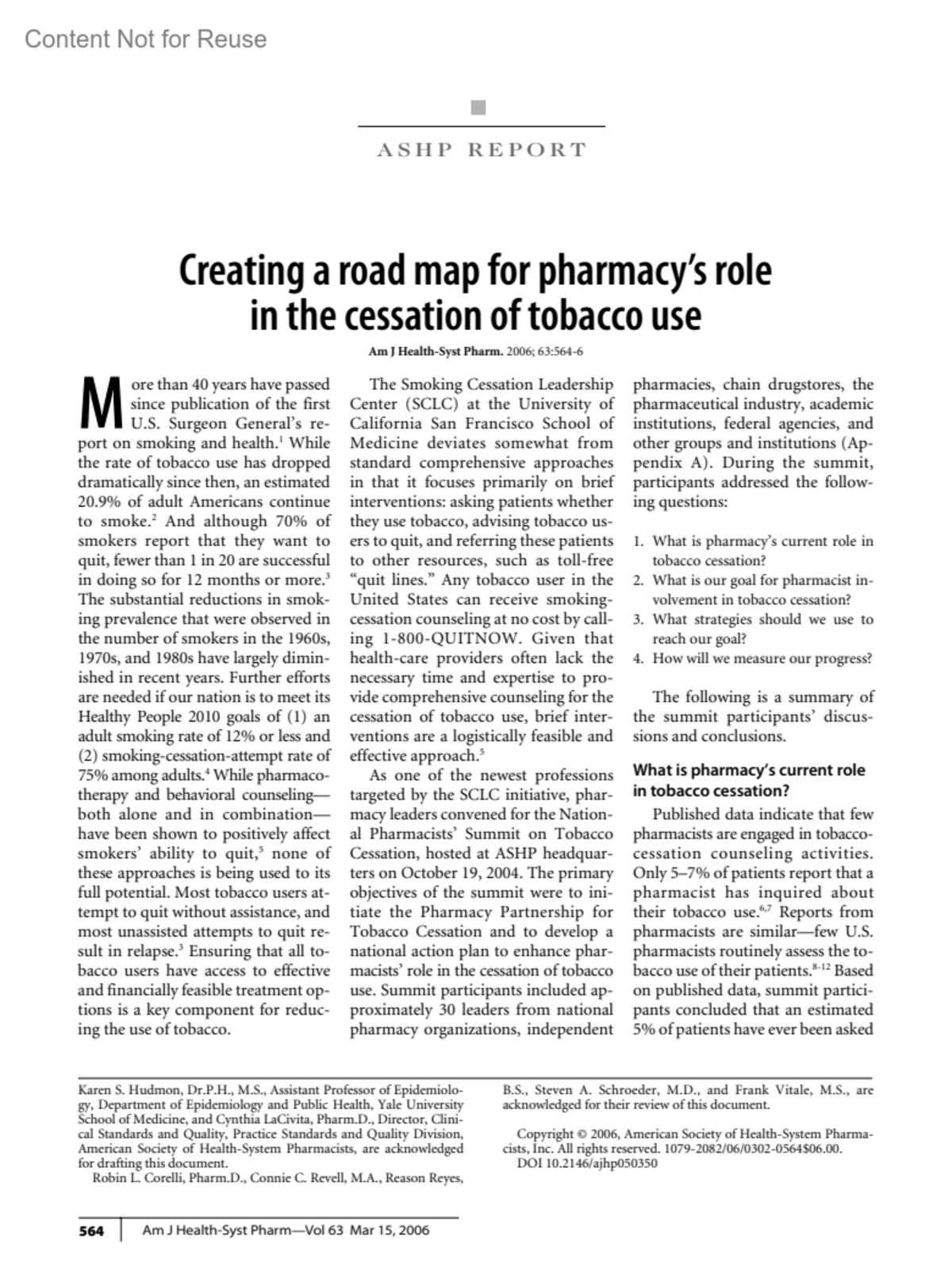 Creating a road map for pharmacy's role in the cessation of tobacco use