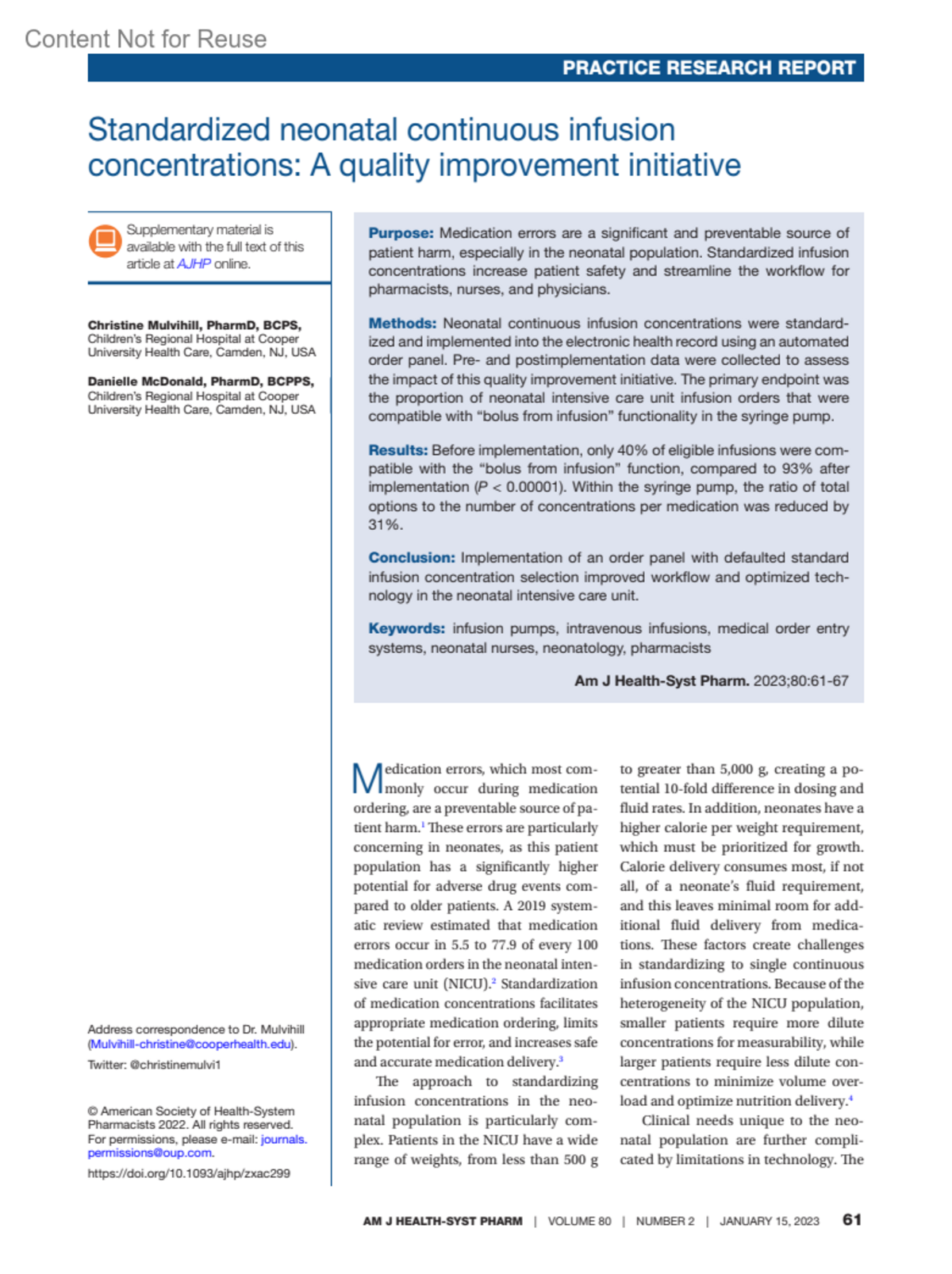 American Journal of Health-System Pharmacy 80(2):p 61-67, January 15, 2023. | DOI: 10.1093/ajhp/zxac299