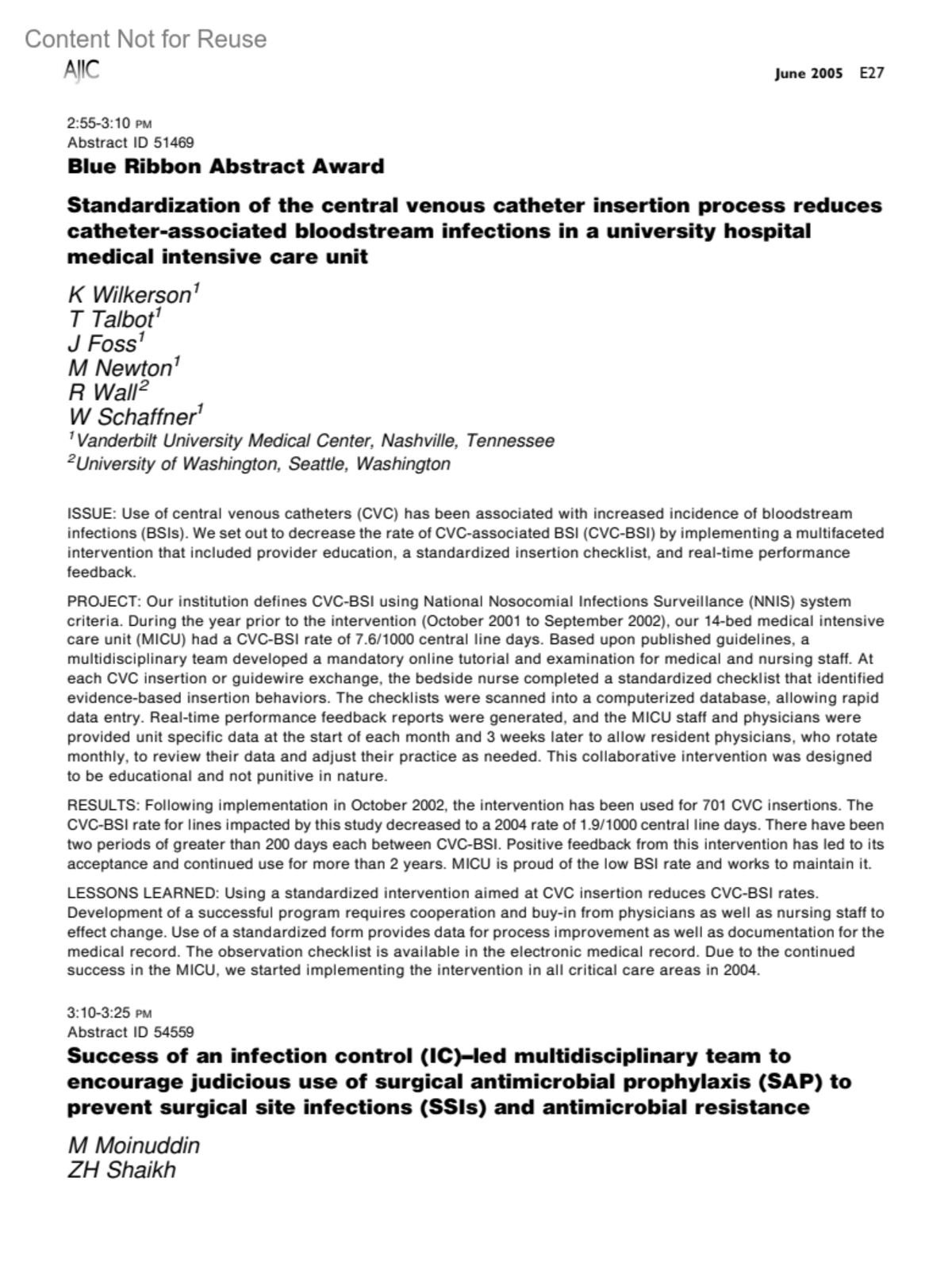 AJIC: American Journal of Infection Control 33(5):p E27, June 2005.