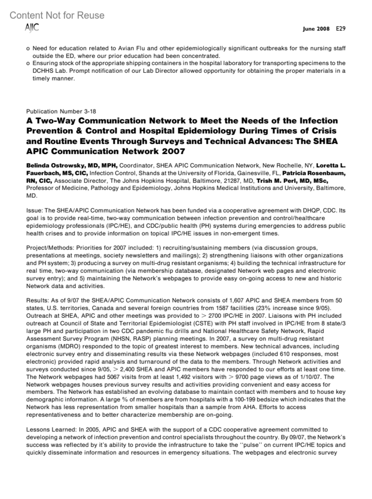 Copyright © 2008 by the Association for Professionals in Infection Control and Epidemiology, Inc.