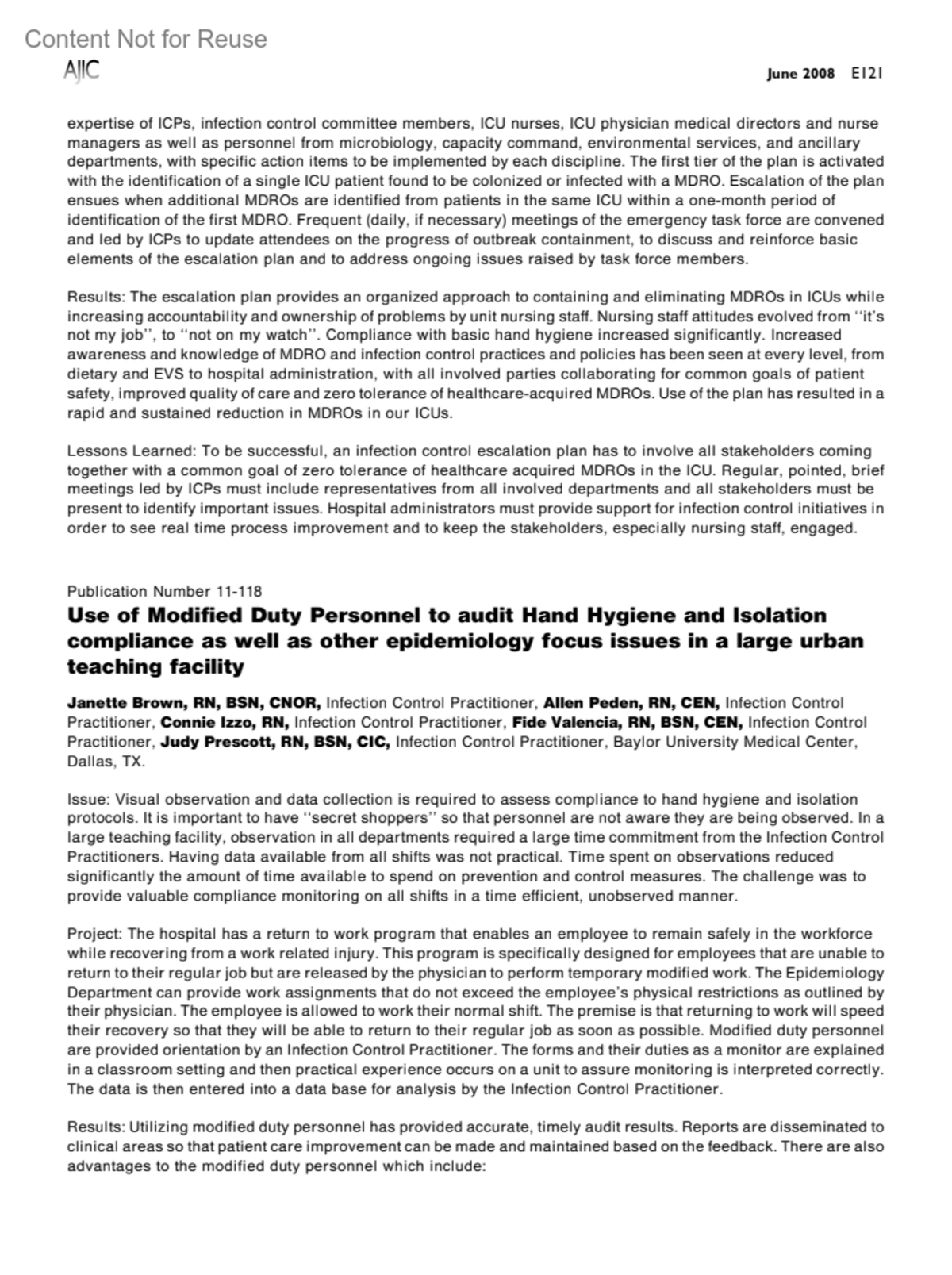 AJIC: American Journal of Infection Control 36(5):p E121-E122, June 2008.