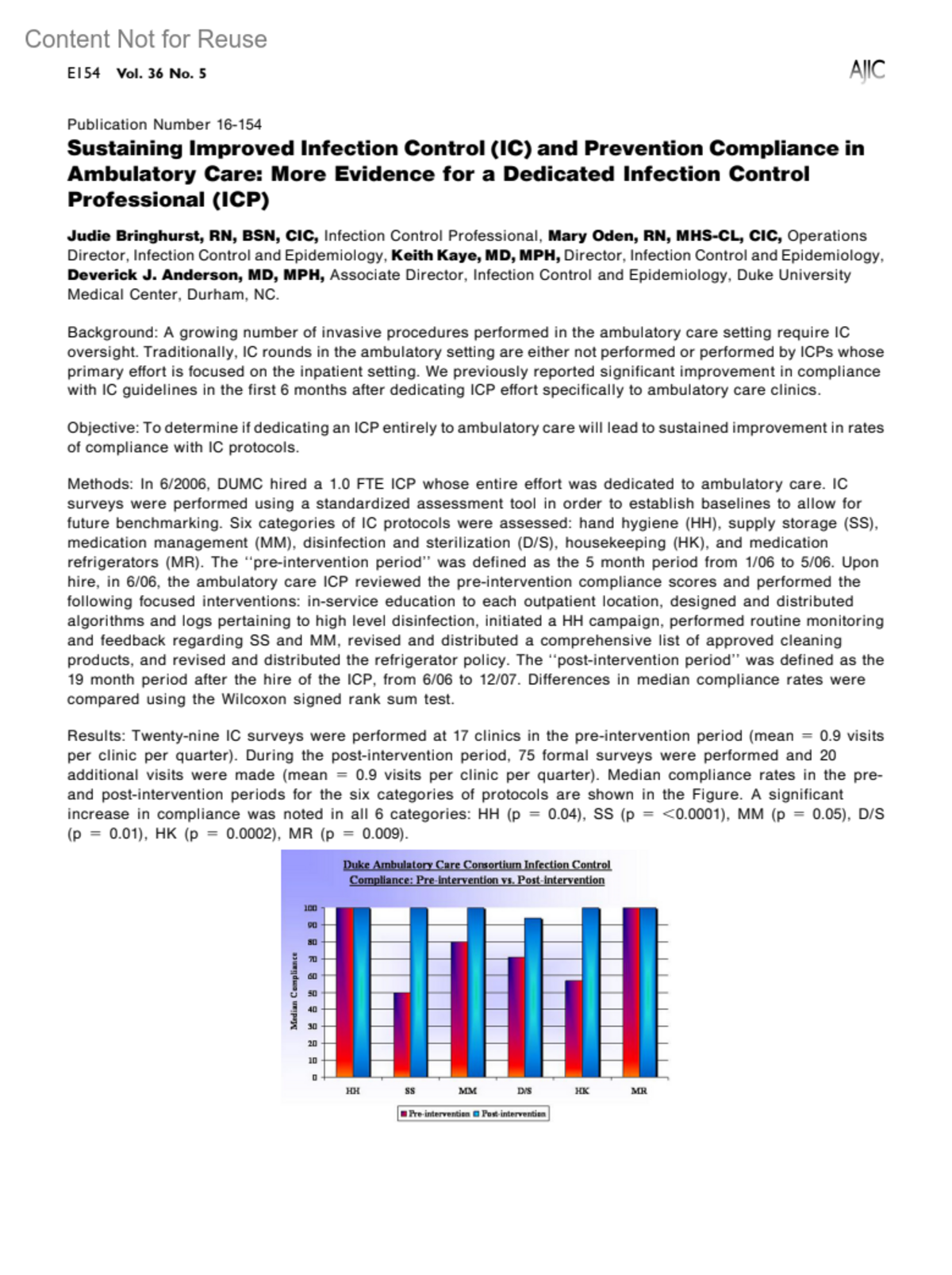 Sustaining Improved Infection Control (IC) and Prevention Compliance in Ambulatory Care: More Evidence for a Dedicated Infection Control Professional (ICP)