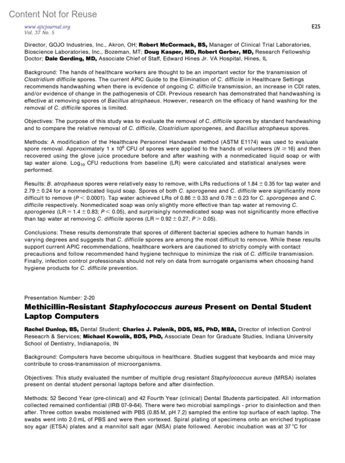 AJIC: American Journal of Infection Control 37(5):p E25-E26, June 2009.
