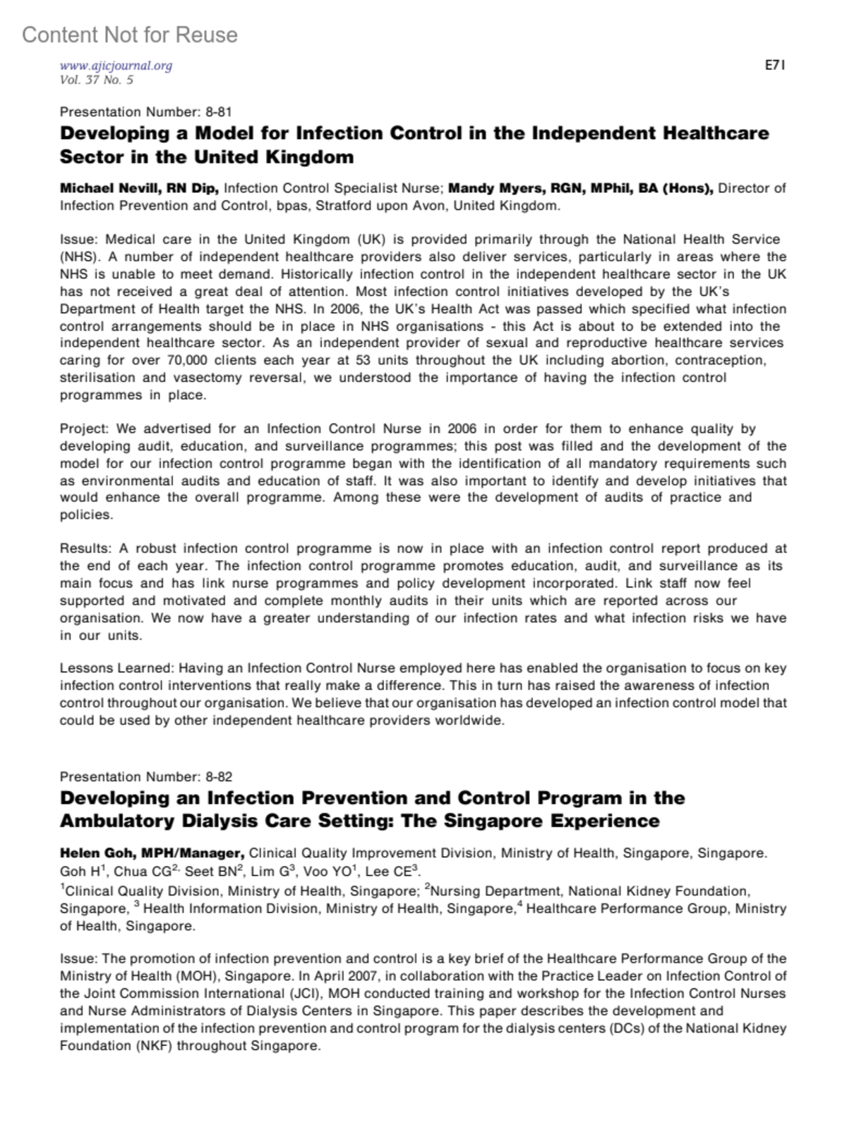 AJIC: American Journal of Infection Control 37(5):p E71, June 2009.