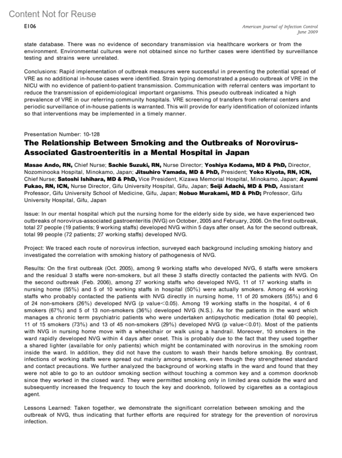 AJIC: American Journal of Infection Control 37(5):p E106, June 2009.