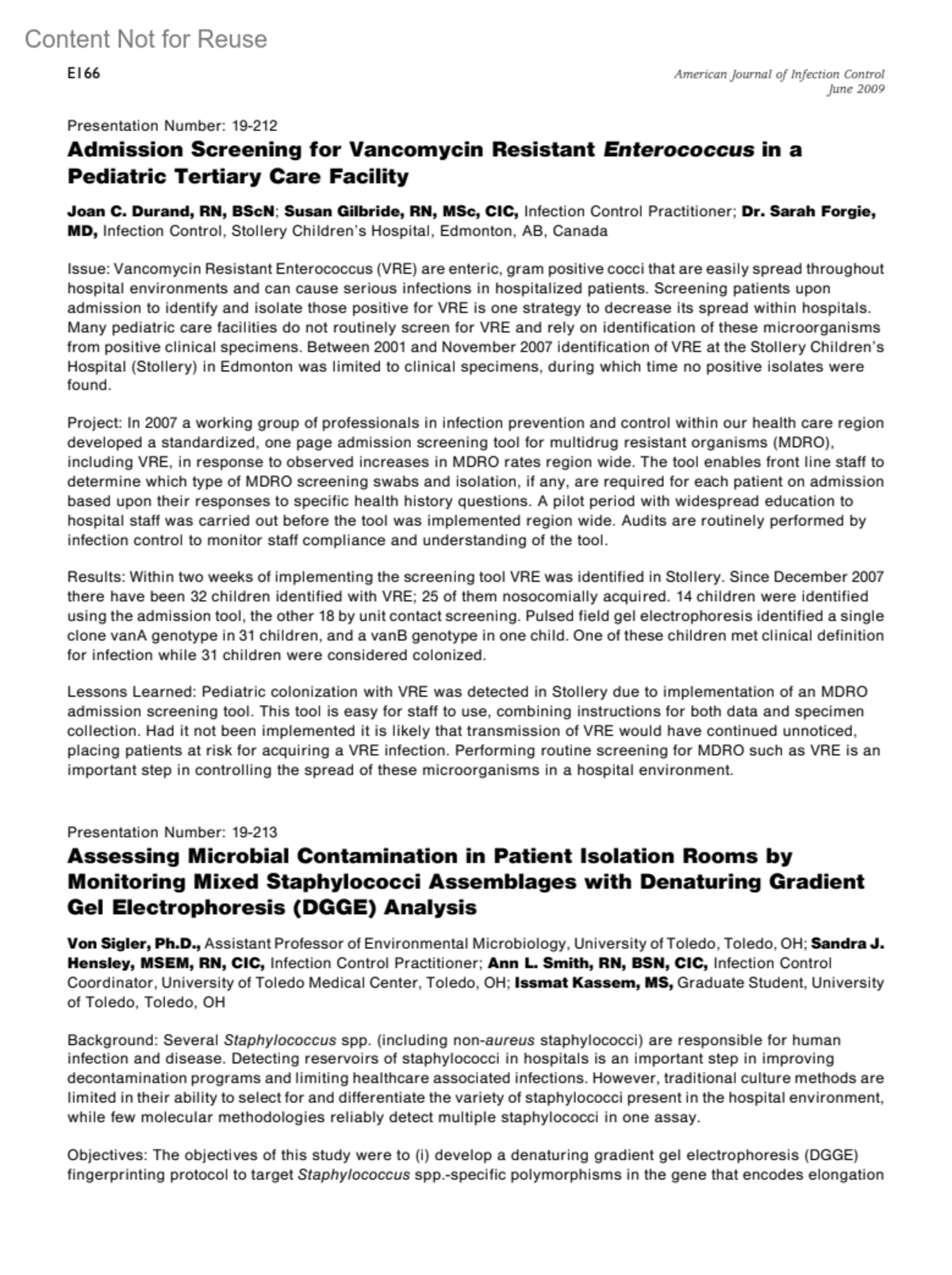 AJIC: American Journal of Infection Control 37(5):p E166-E167, June 2009.