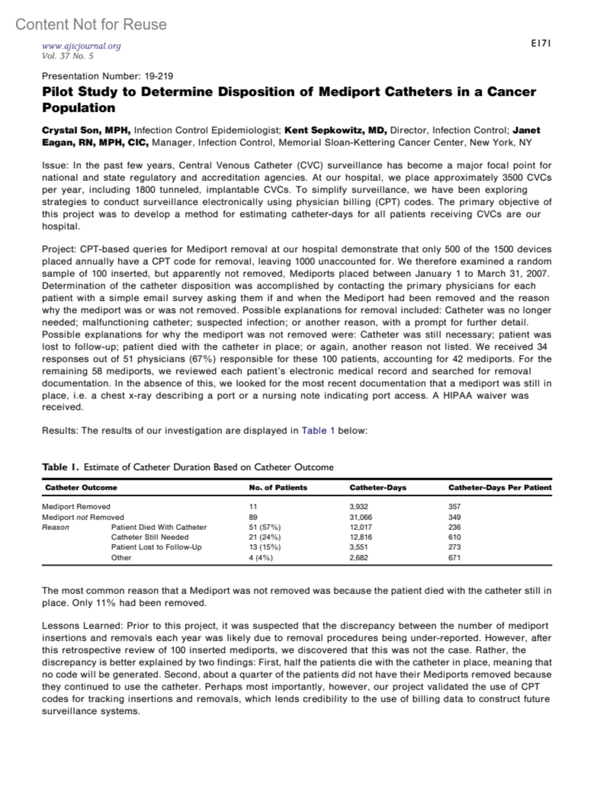 AJIC: American Journal of Infection Control 37(5):p E171, June 2009.