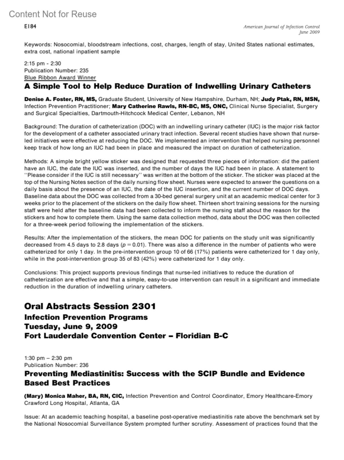 AJIC: American Journal of Infection Control 37(5):p E184, June 2009.