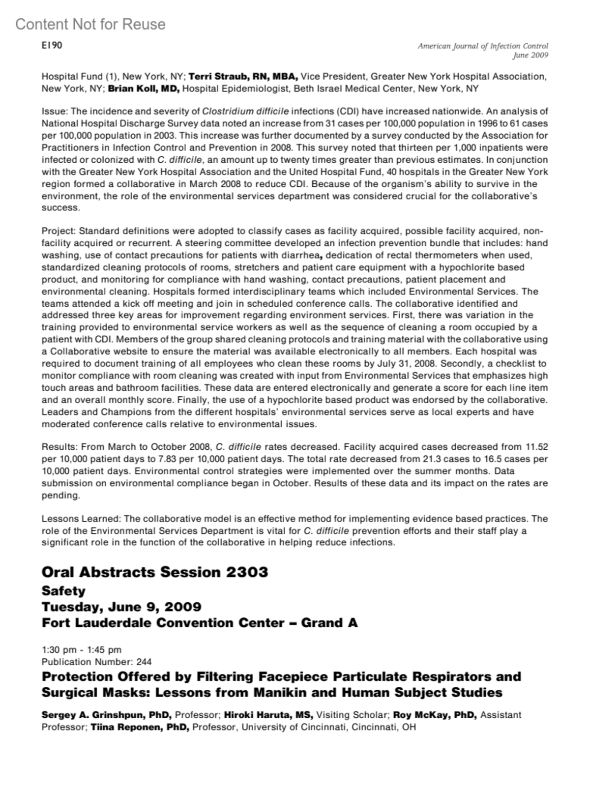 AJIC: American Journal of Infection Control 37(5):p E190-E191, June 2009.