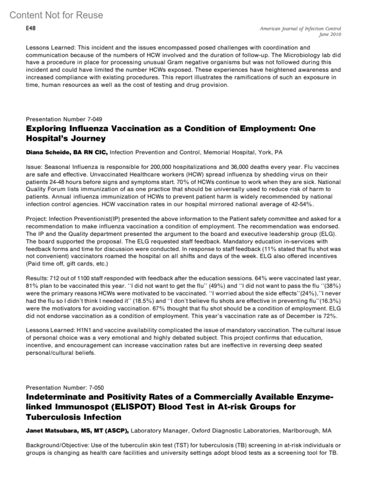AJIC: American Journal of Infection Control 38(5):p E48-E49, June 2010.