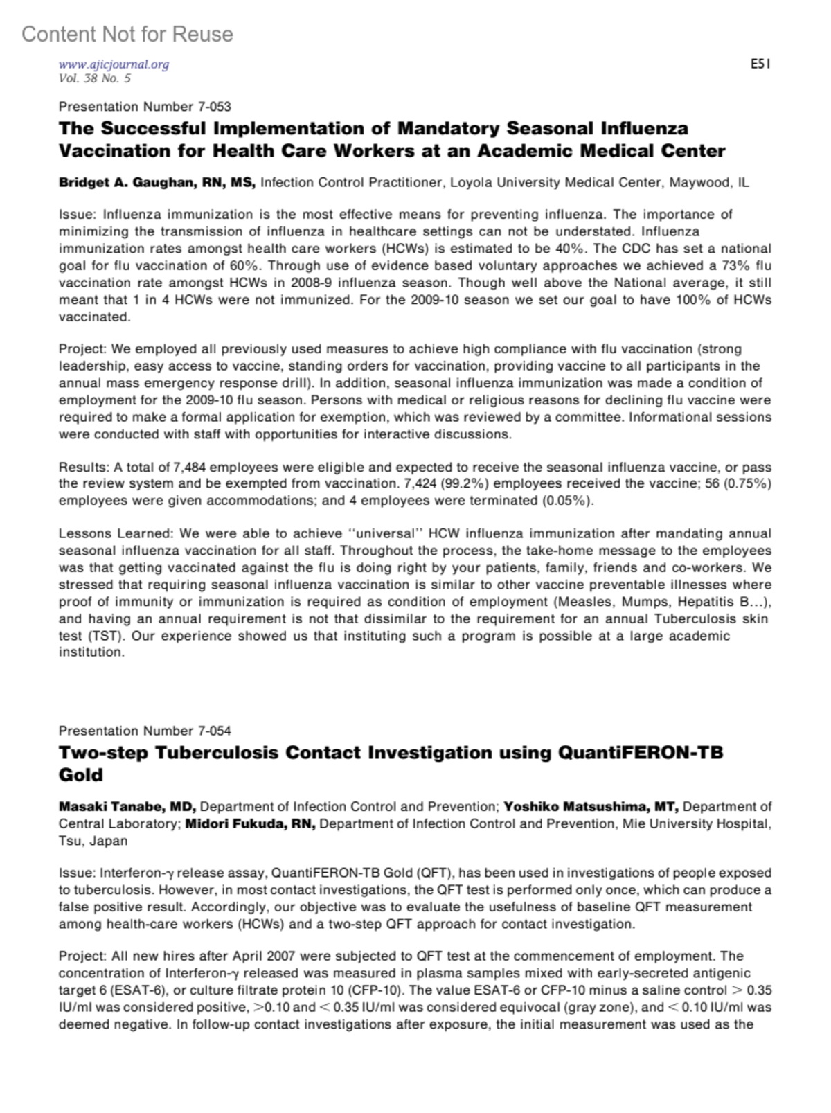 AJIC: American Journal of Infection Control 38(5):p E51-E52, June 2010.