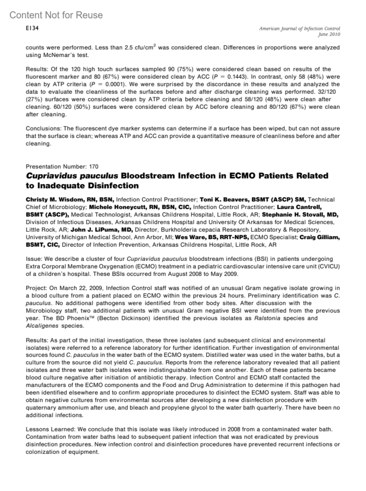 AJIC: American Journal of Infection Control 38(5):p E134, June 2010.