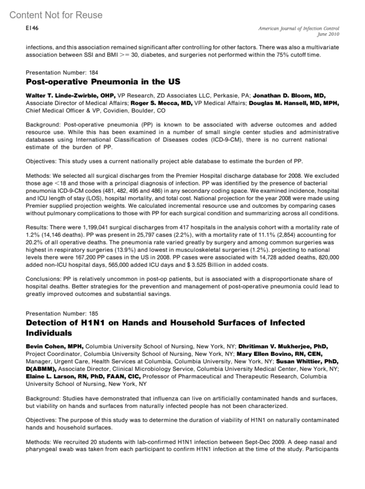 AJIC: American Journal of Infection Control 38(5):p E146-E147, June 2010.