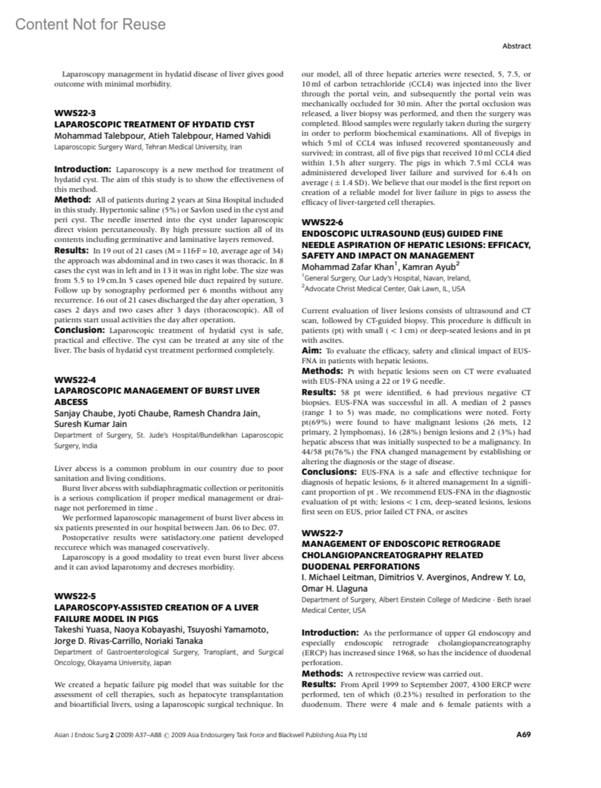 LAPAROSCOPIC MANAGEMENT OF BURST LIVER ABCESSWWS22-4Chaube, SanjayChaube, JyotiJain, Ramesh ChandraJain, Suresh KumarAuthor informationDepartment of Surgery, St. Jude's Hospital/Bundelkhan Laparoscopic Surgery, IndiaAsian Journal Of Endoscopic Surgery 2(2):p A69, August 2009.Copyright © 2009 John Wiley & Sons, Inc.