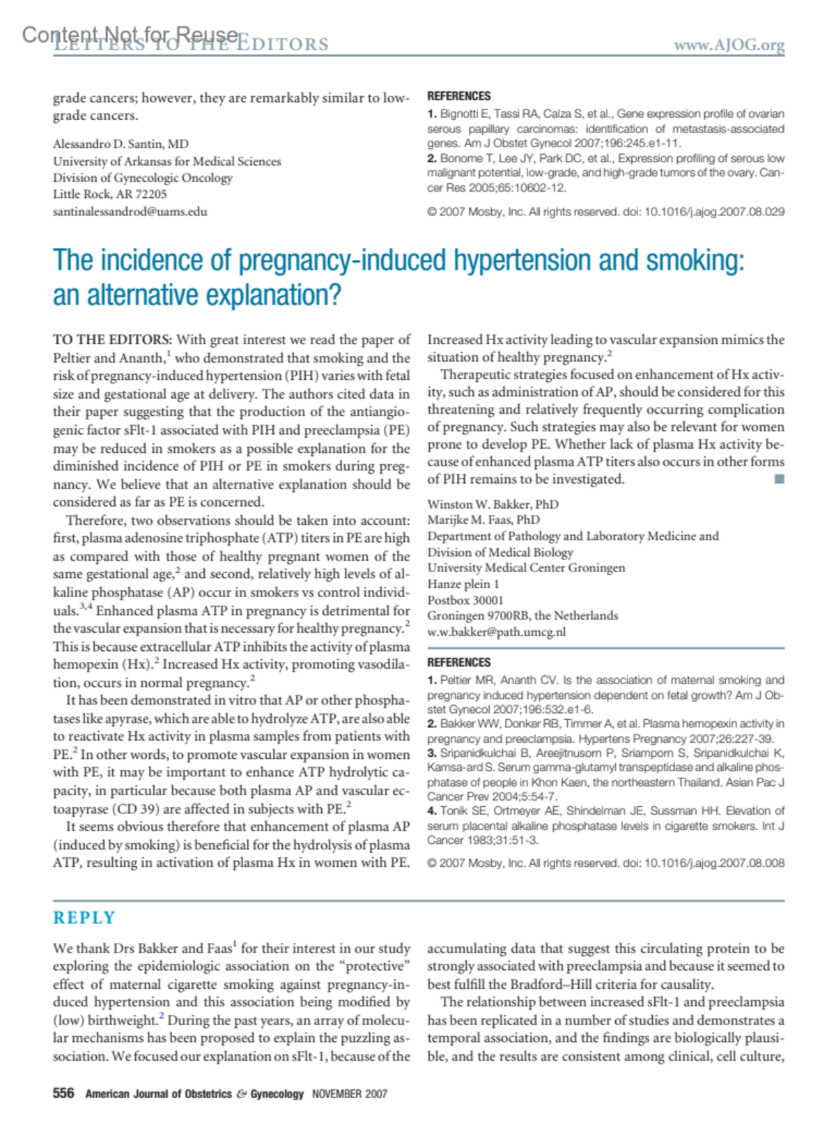 American Journal of Obstetrics and Gynecology 197(5):p 556-557, November 2007.