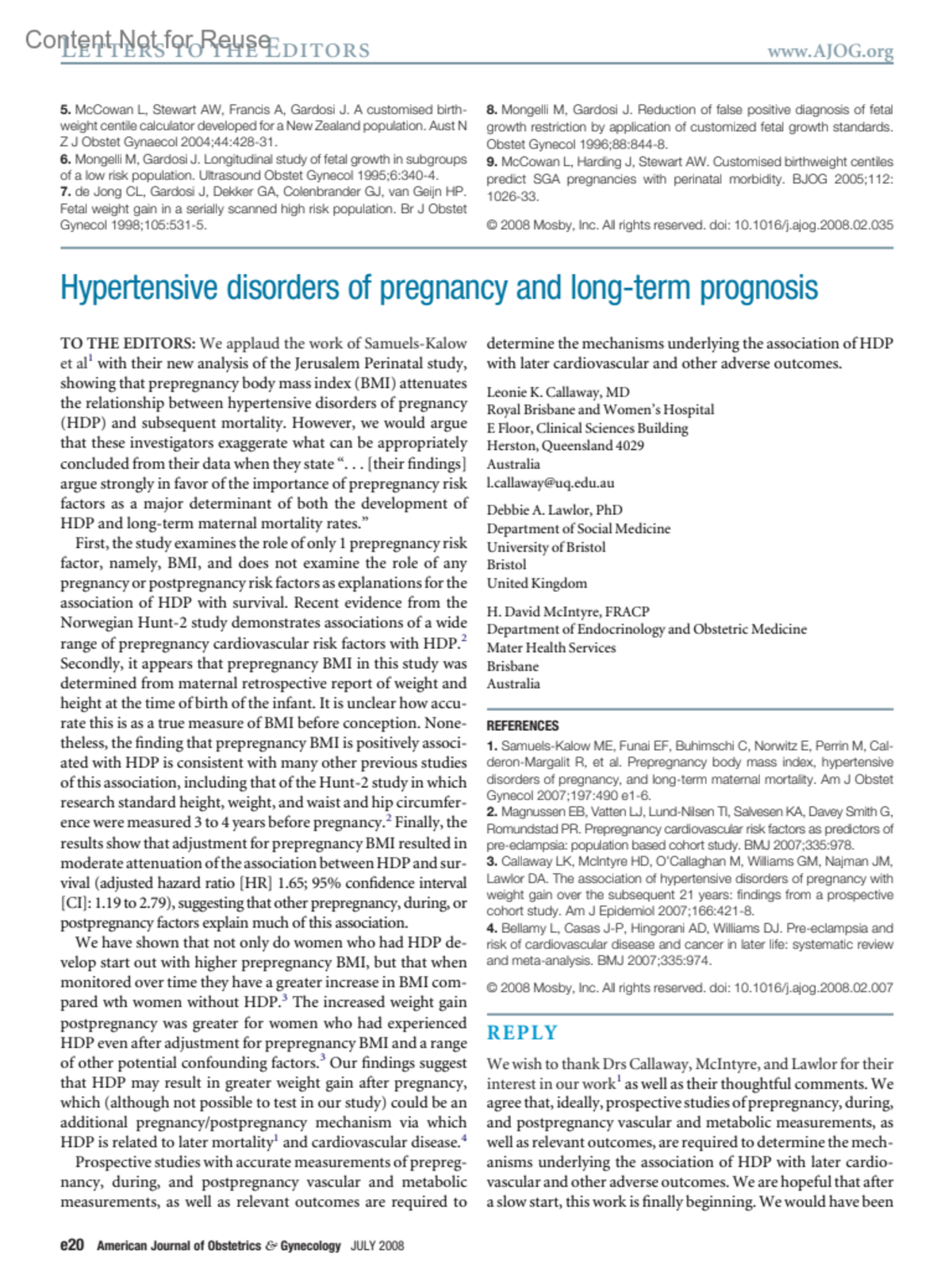 American Journal of Obstetrics and Gynecology 199(1):p e20-e21, July 2008.