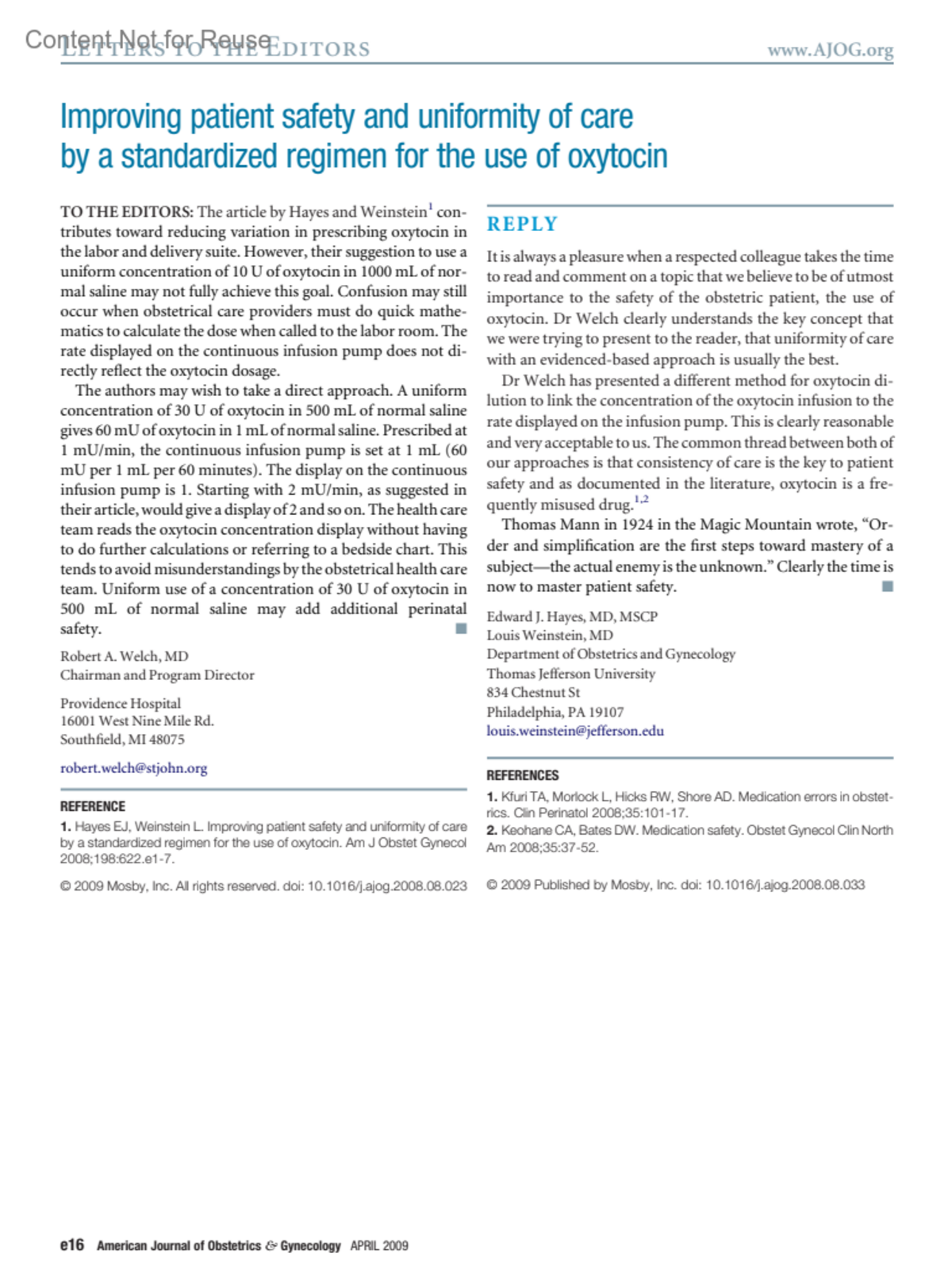 American Journal of Obstetrics and Gynecology 200(4):p e16, April 2009.