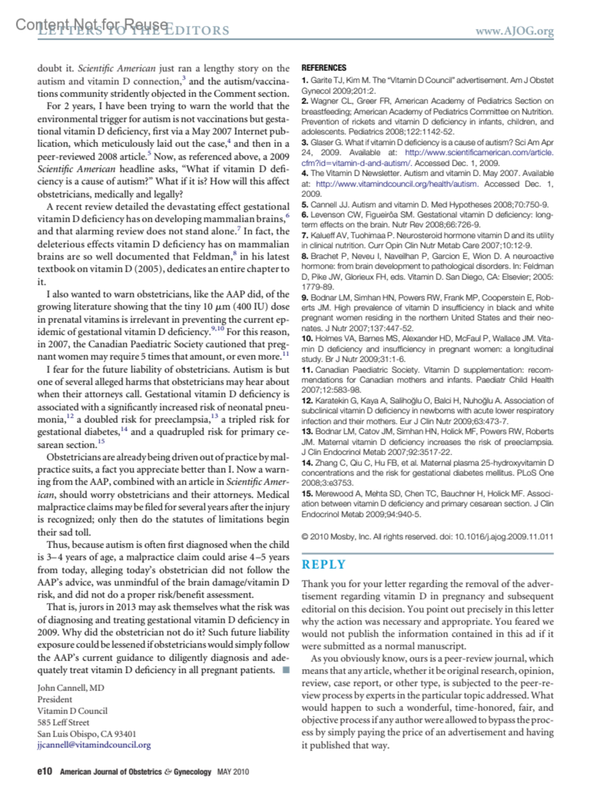 Vitamin D “advertisement”American Journal of Obstetrics and Gynecology 202(5):p e10-e11, May 2010.Copyright © Mosby-Year Book Inc. 2010. All Rights Reserved.