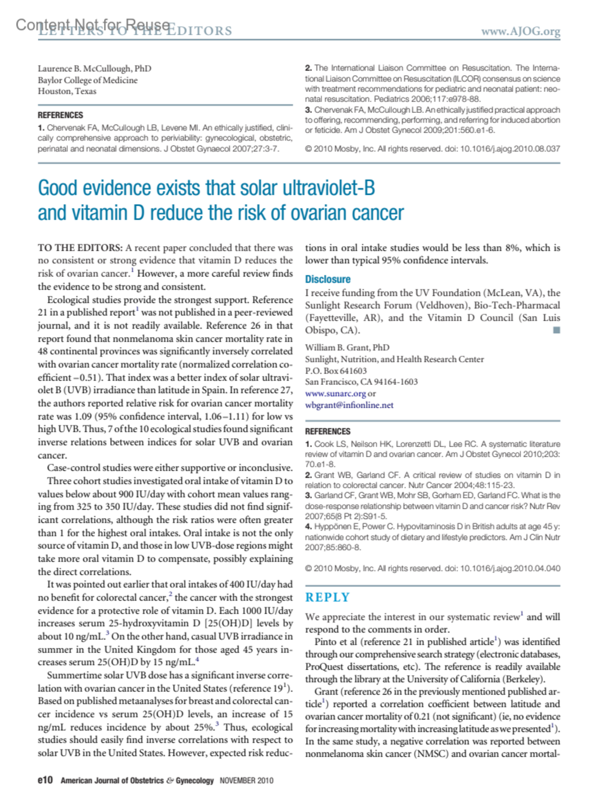 American Journal of Obstetrics and Gynecology 203(5):p e10, November 2010.