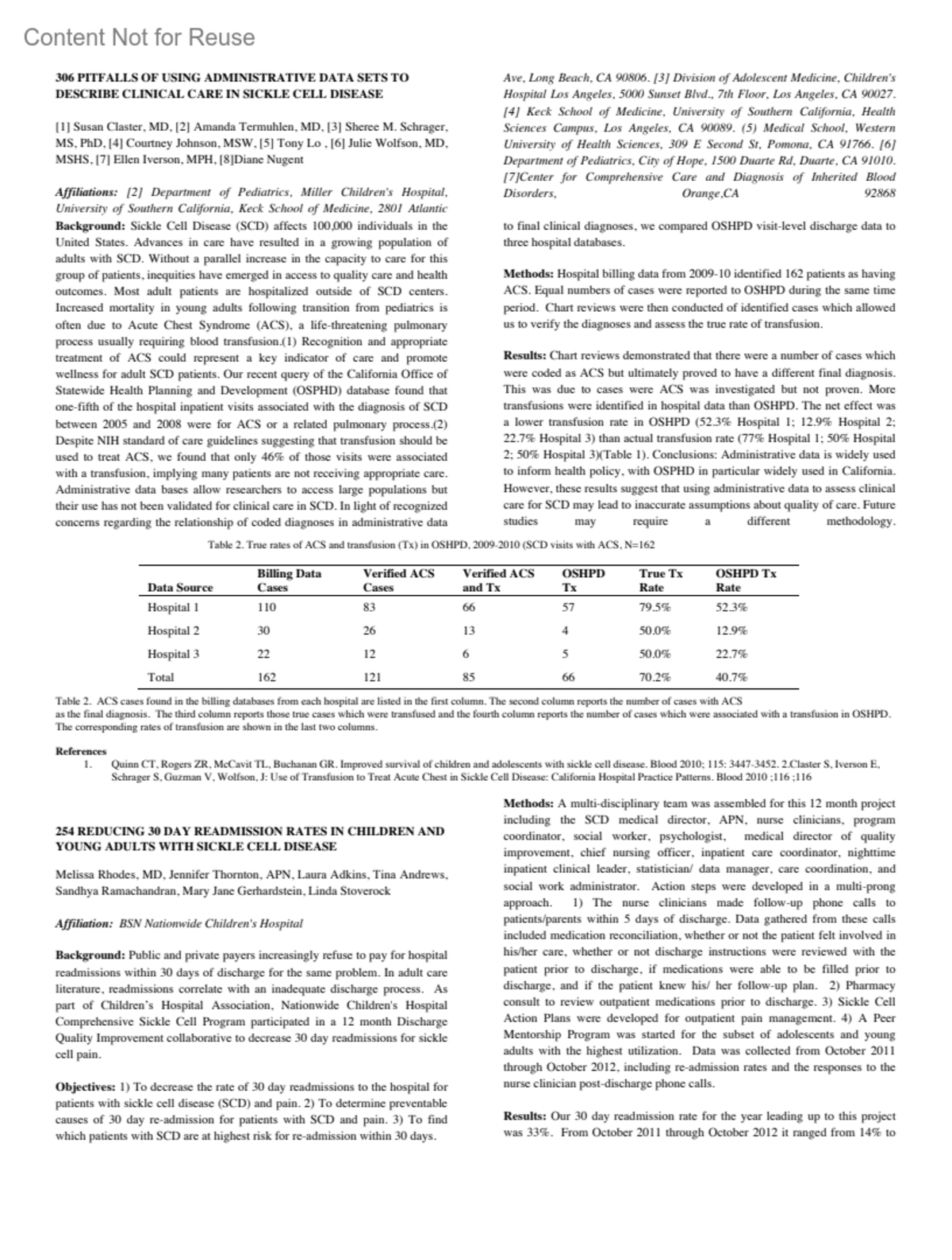 PITFALLS OF USING ADMINISTRATIVE DATA SETS TO DESCRIBE CLINICAL CARE IN SICKLE CELL DISEASE