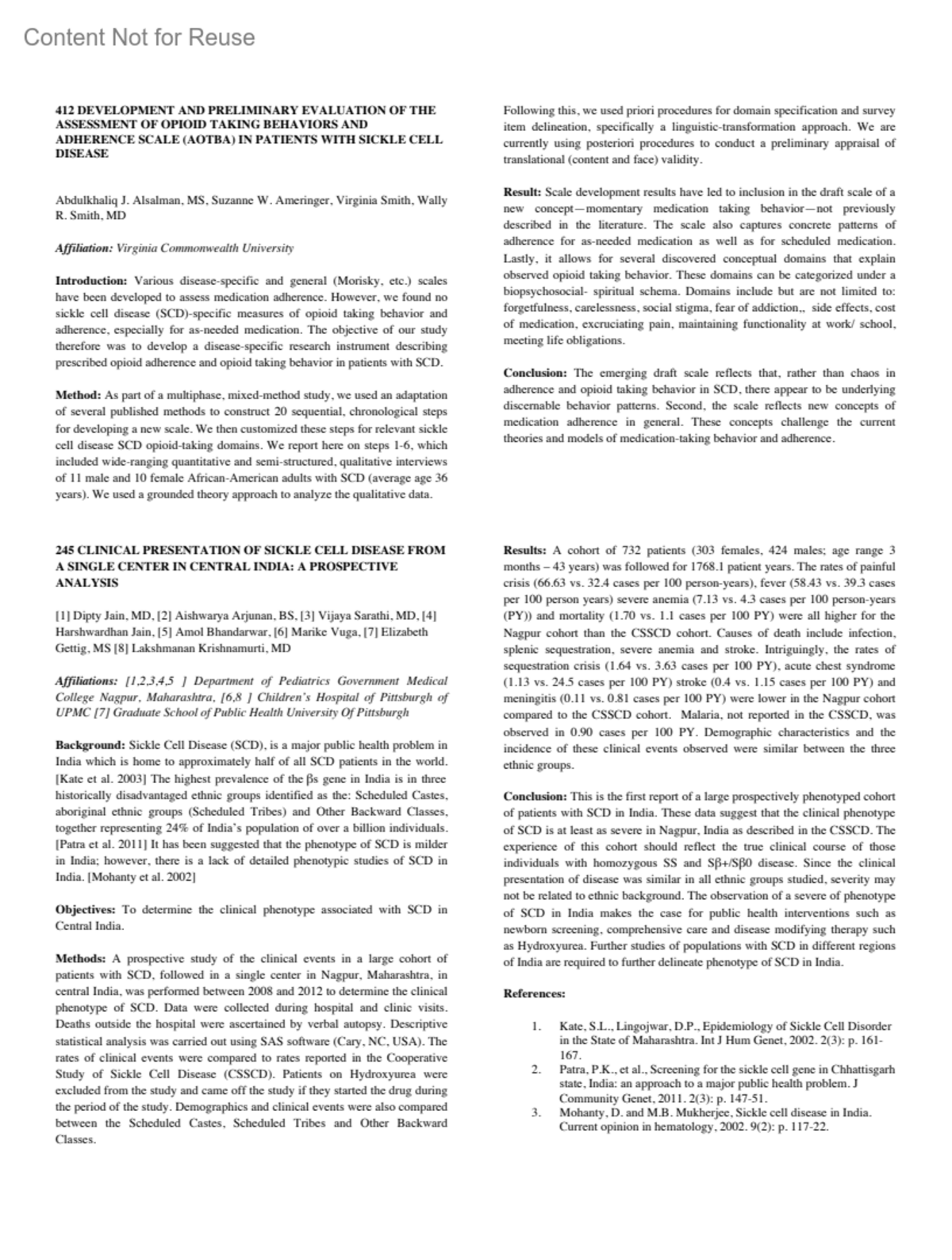DEVELOPMENT AND PRELIMINARY EVALUATION OF THE ASSESSMENT OF OPIOID TAKING BEHAVIORS AND ADHERENCE SCALE (AOTBA) IN PATIENTS WITH SICKLE CELL DISEASE