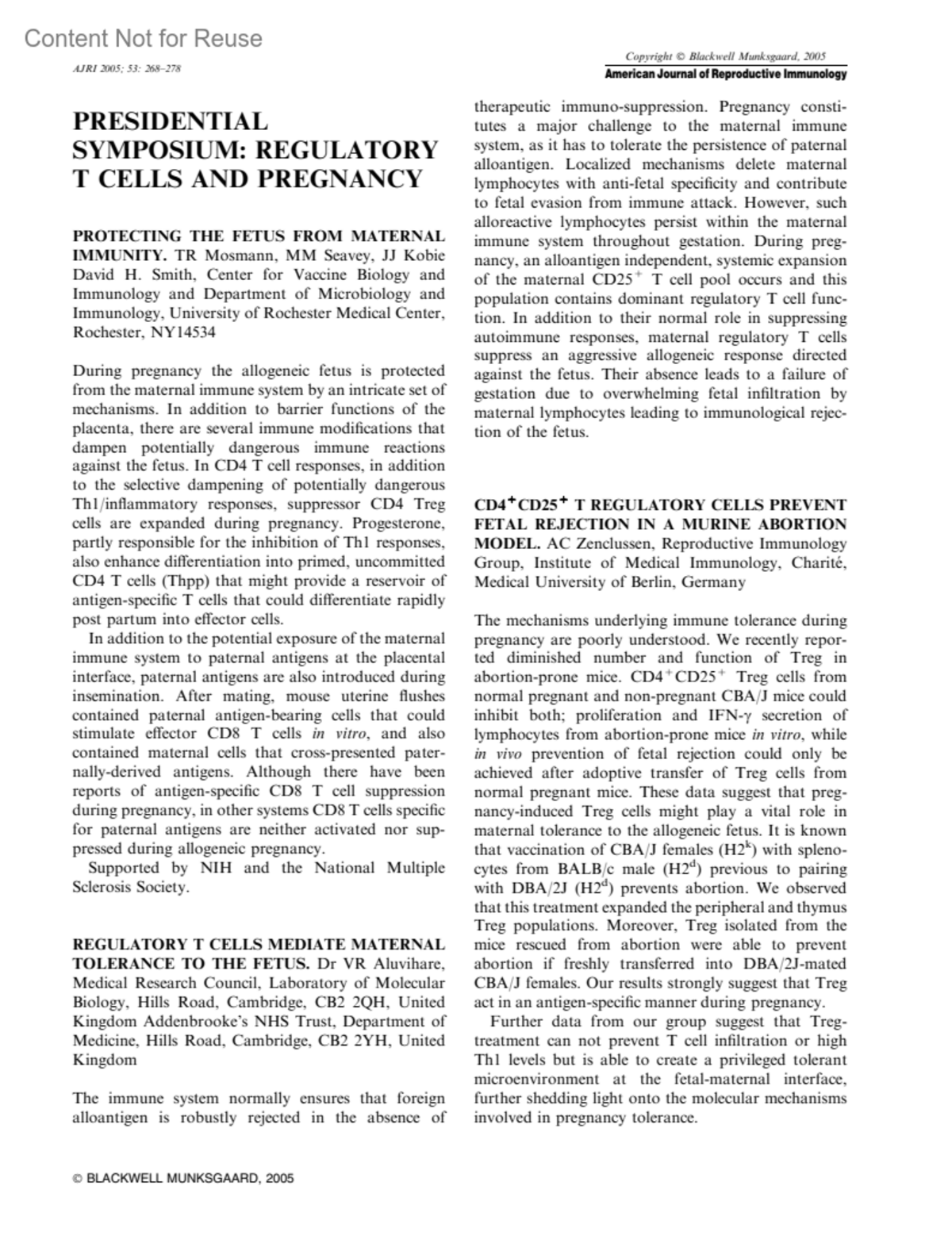 American Journal of Reproductive Immunology 53(6):p 268, June 2005.