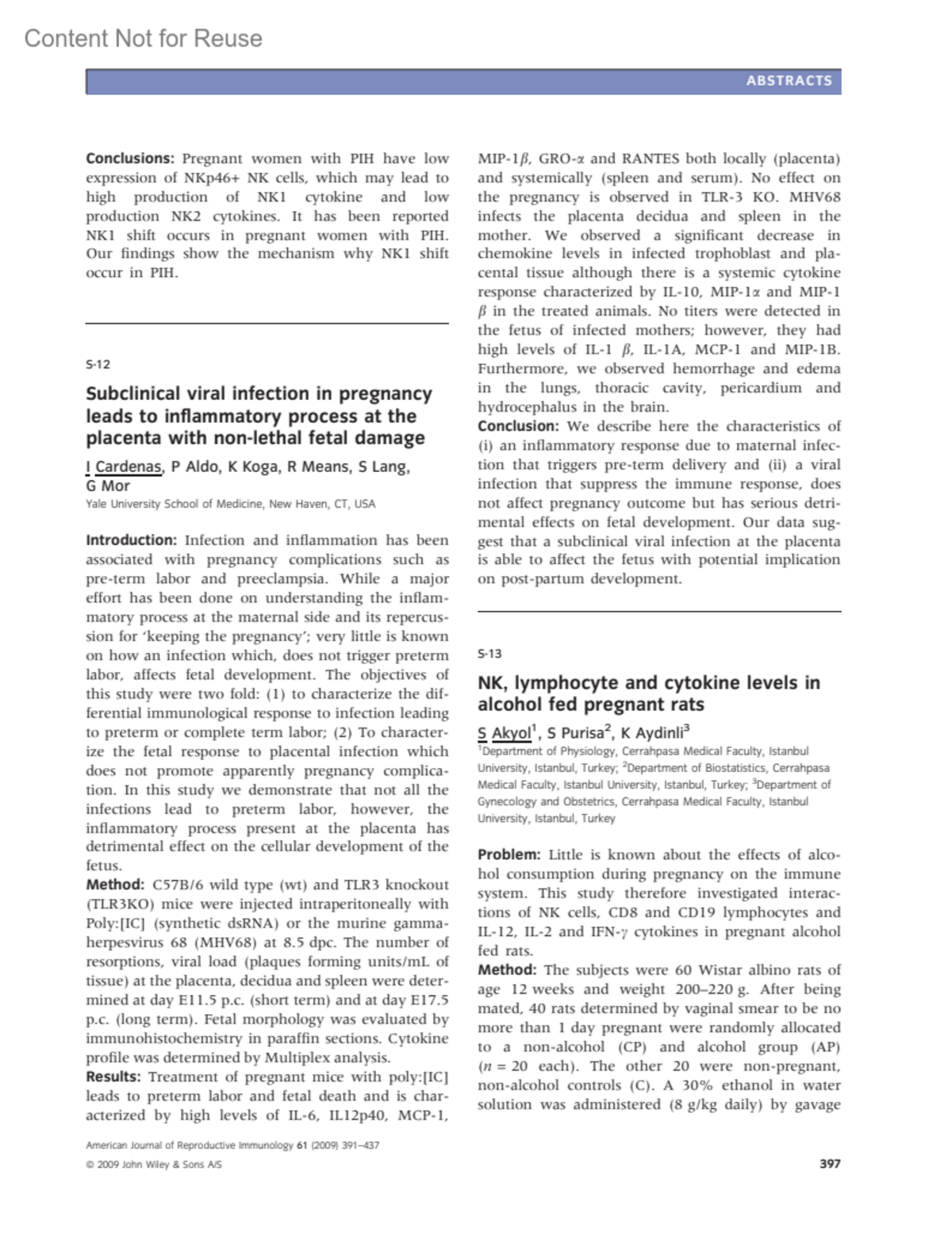 American Journal of Reproductive Immunology 61(6):p 397, June 2009.