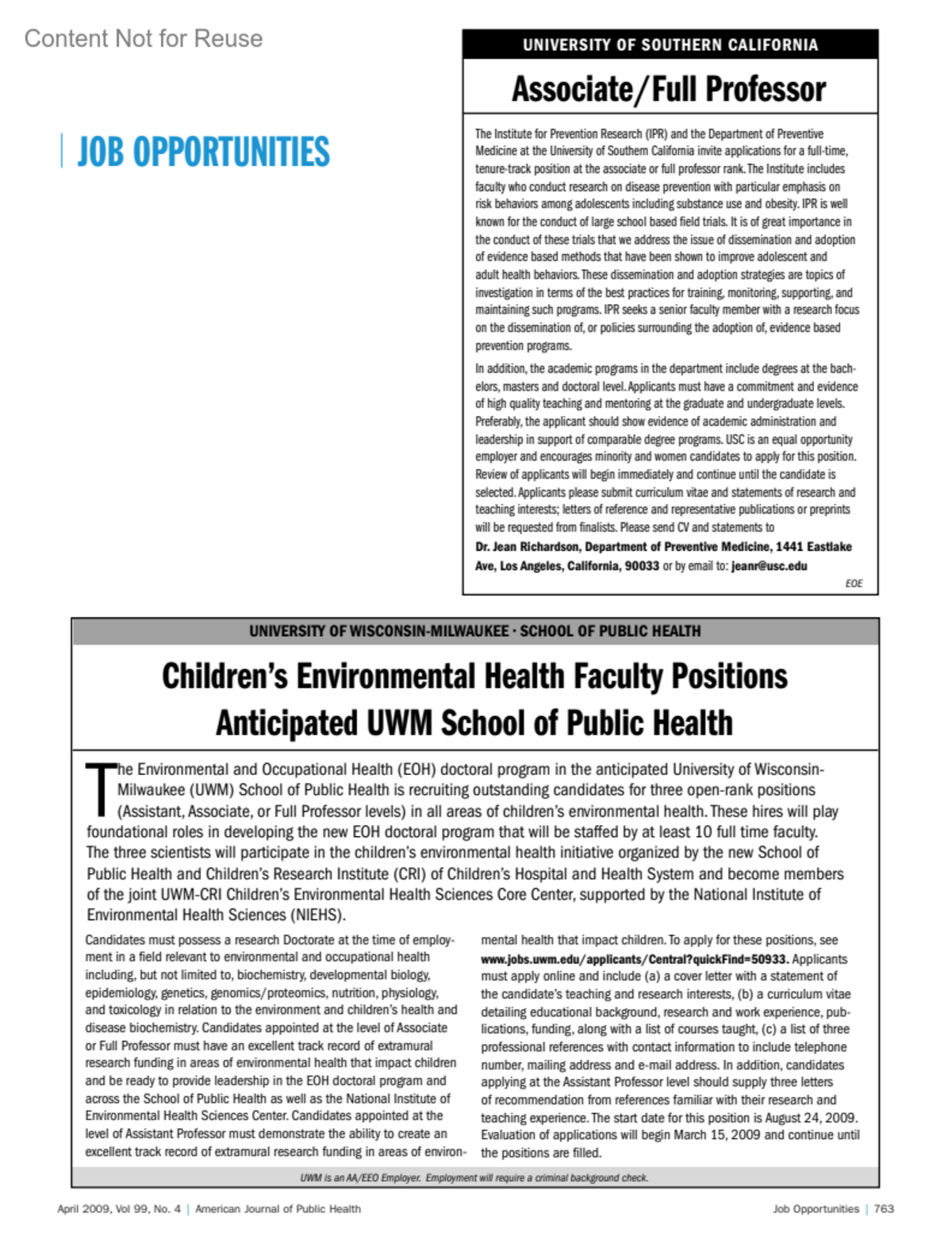 American Journal of Public Health 99(4):p 763-765, April 2009. | DOI: