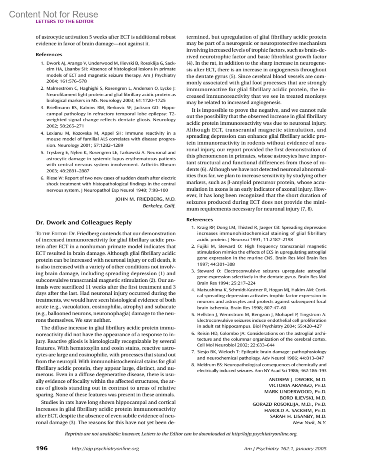 American Journal of Psychiatry 162(1):p 196, January 2005.