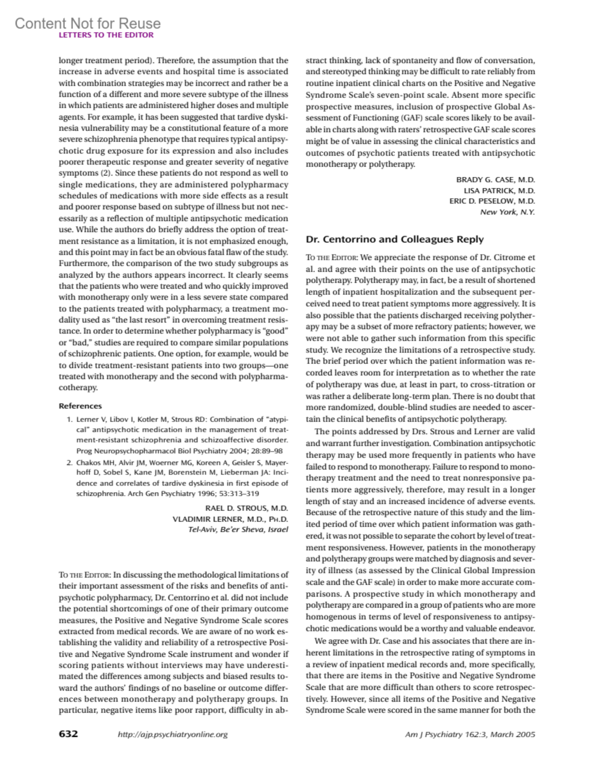 American Journal of Psychiatry 162(3):p 632-633, March 2005.