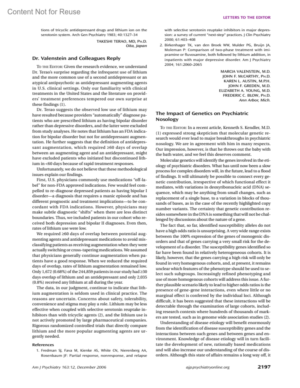 American Journal of Psychiatry 163(12):p 2197, December 2006.