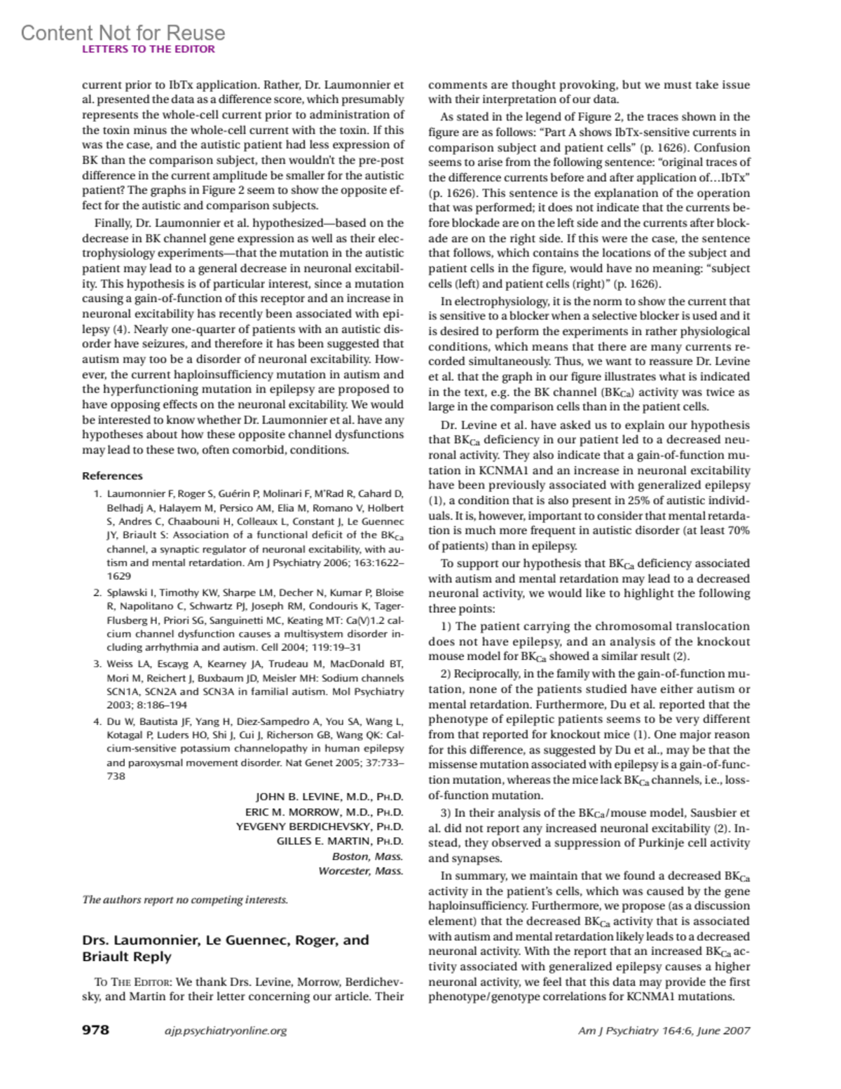American Journal of Psychiatry 164(6):p 978-979, June 2007.