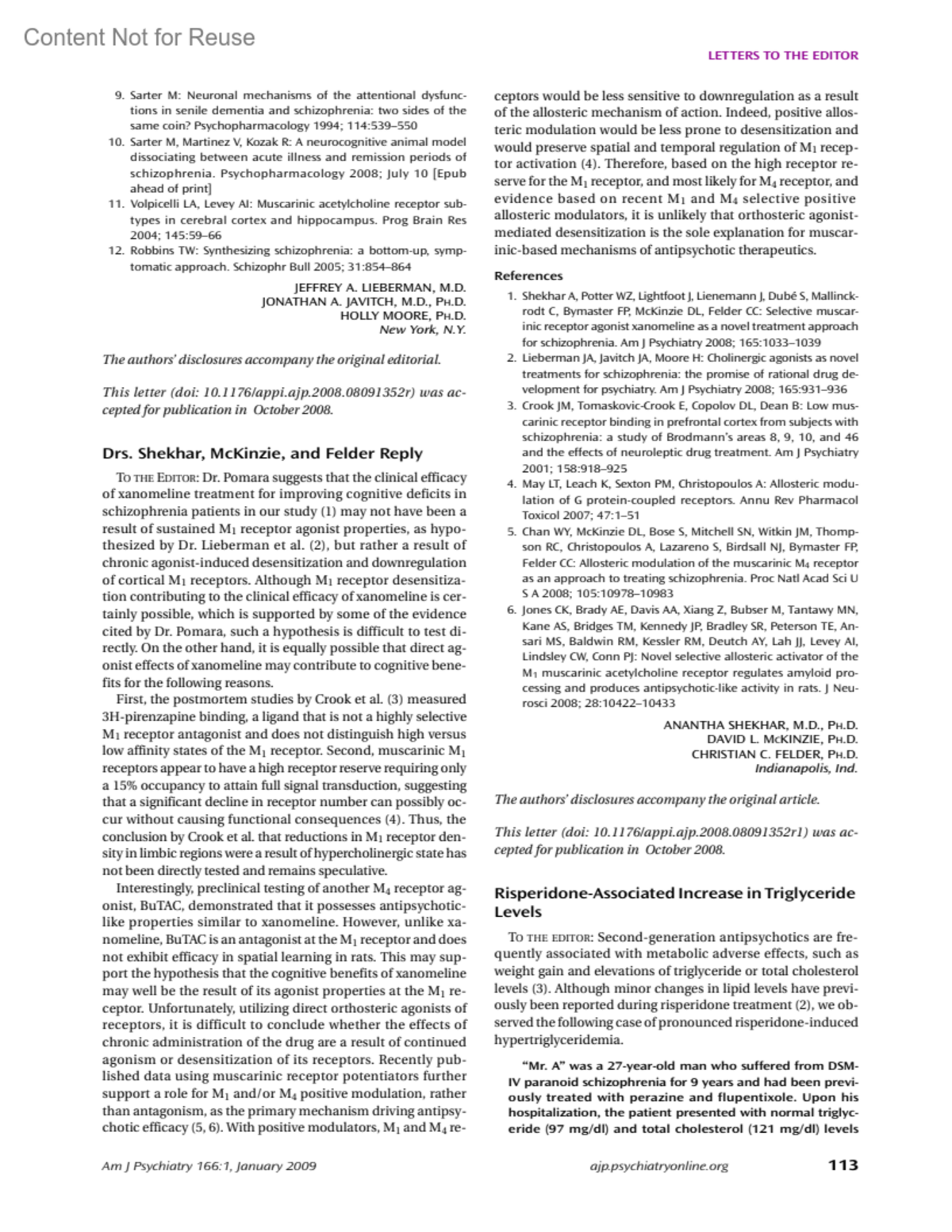 American Journal of Psychiatry 166(1):p 113, January 2009.