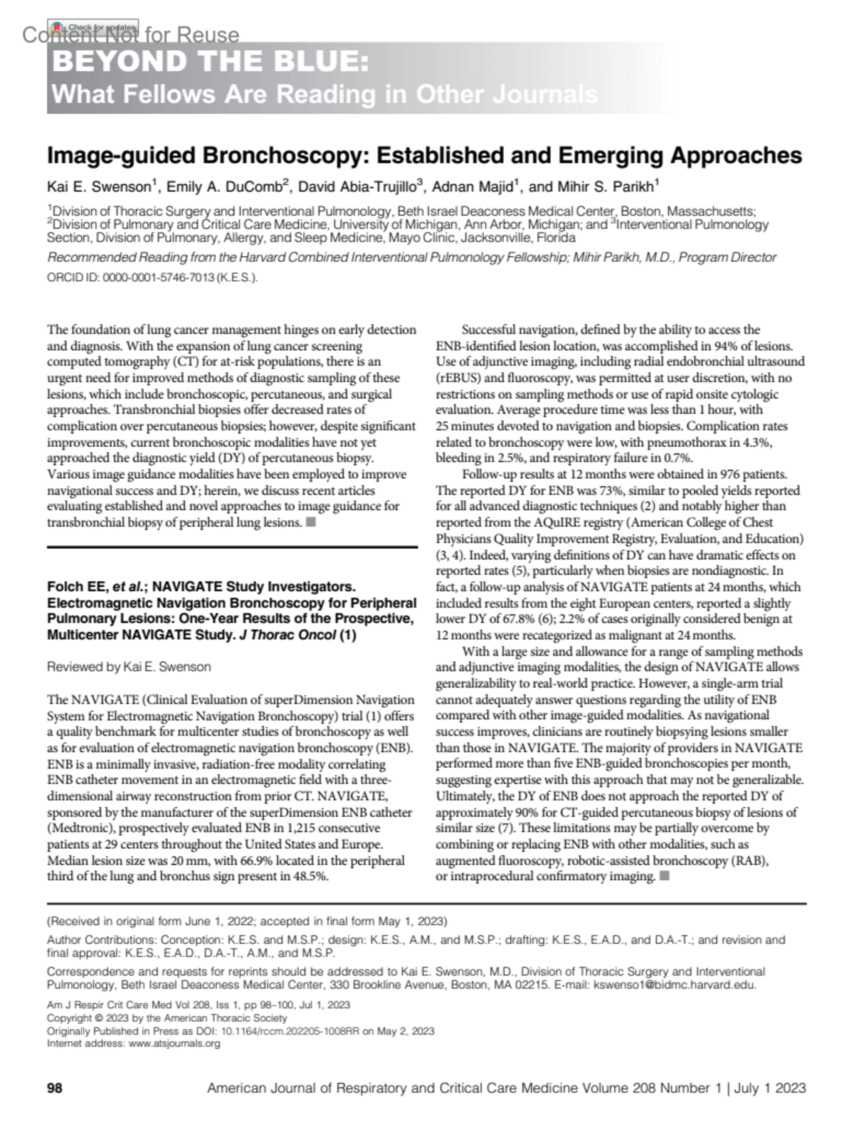American Journal of Respiratory and Critical Care Medicine 208(1):p 98-99, July 1, 2023.