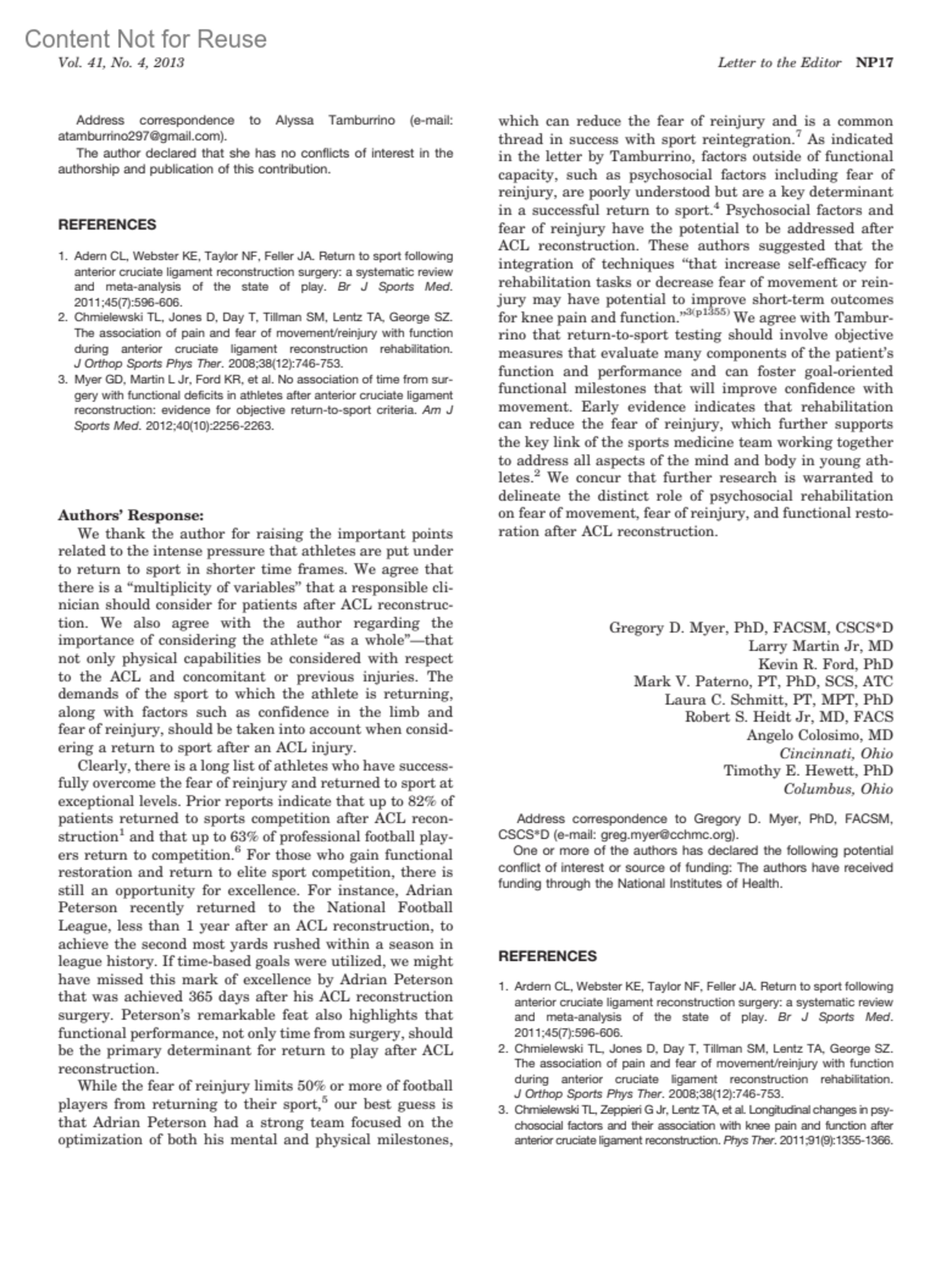 American Journal of Sports Medicine 41(4):p N17-N18, April 2013. | DOI: 10.1177/0363546513481327
