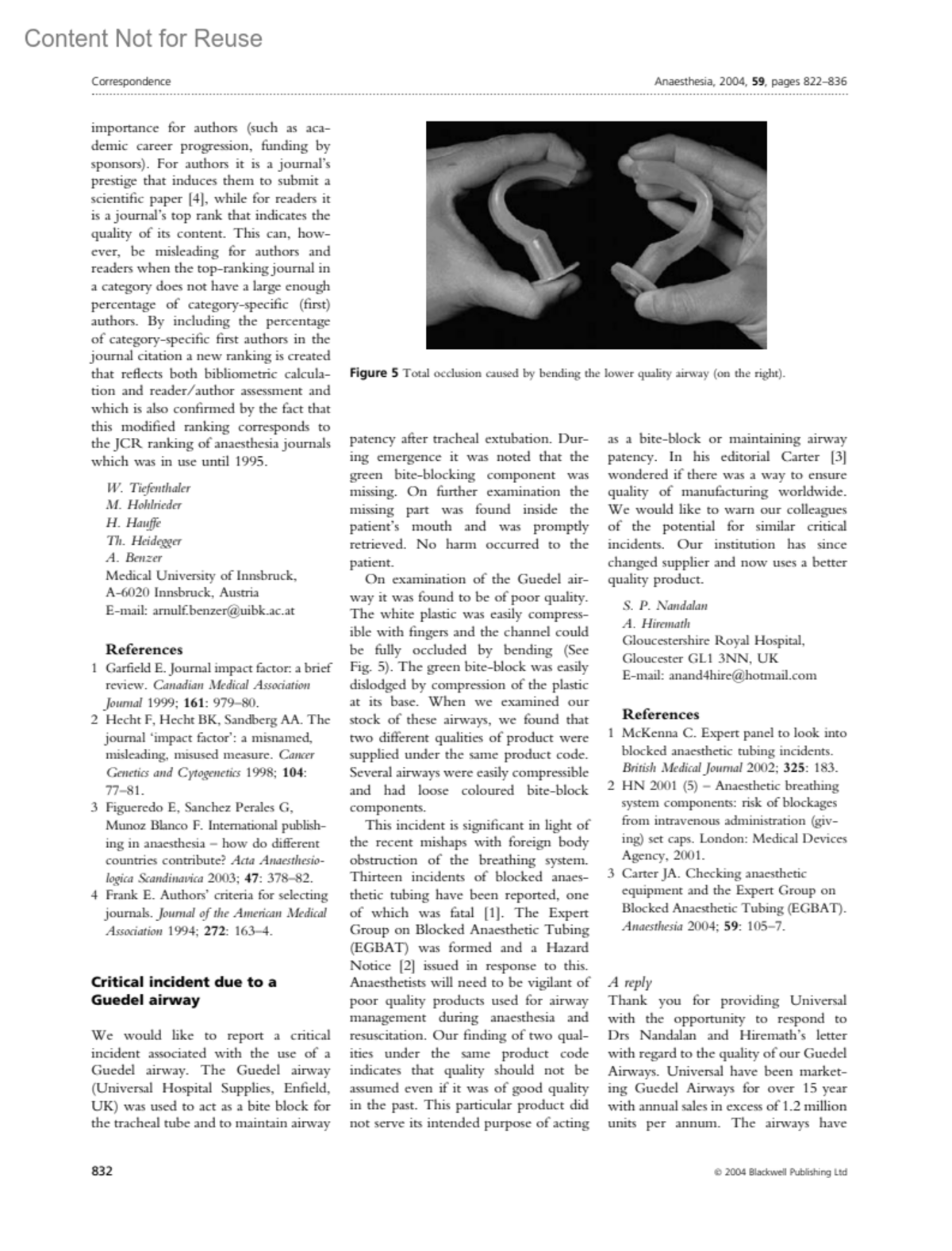 A response to a previously published article or letter can be submitted to the Online Correspondence section at http://www.anaesthesiacorrespondence.com. A selection of this correspondence is published several times a year in Anaesthesia. All correspondence intended for publication in Anaesthesia should be addressed to Dr David Bogod, Editor-in-Chief, and submitted as an e-mail attachment to [email protected]. For multi-author letters, a covering letter signed by all authors must be submitted either by post, fax (44 (0) 115 962 7670) or by e-mail as a scanned document before correspondence can be published. Alternatively, letters may be submitted typewritten on one side of paper, double spaced with wide margins to Anaesthesia, 1st Floor, Maternity Unit, Nottingham City Hospital, Hucknall Road, Nottingham, NG5 1PB, UK. All paper submissions must include a signed covering letter, a disc or CD-ROM with a Word for Windows or .rtf version of the letter and an email address for the corresponding author.