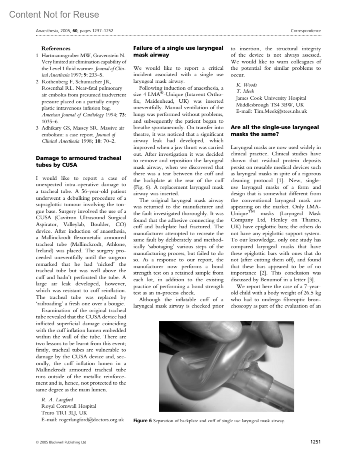 Failure of a single use laryngeal mask airway