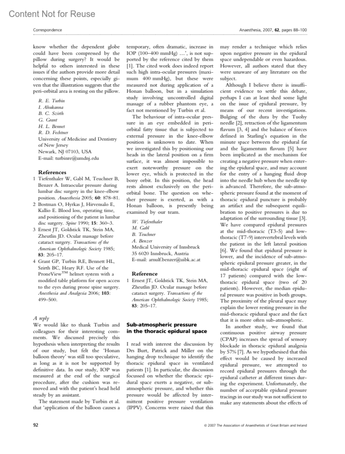 Anaesthesia 62(1):p 92, January 2007.