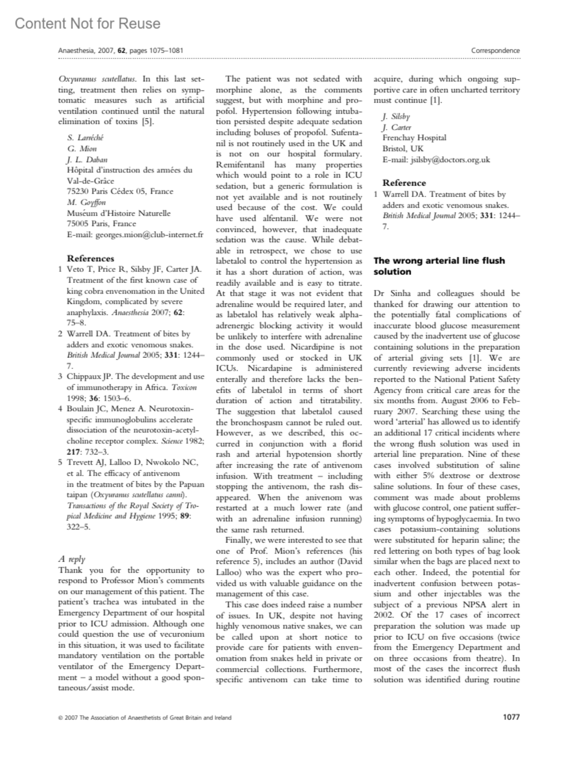 Anaesthesia 62(10):p 1077, October 2007.