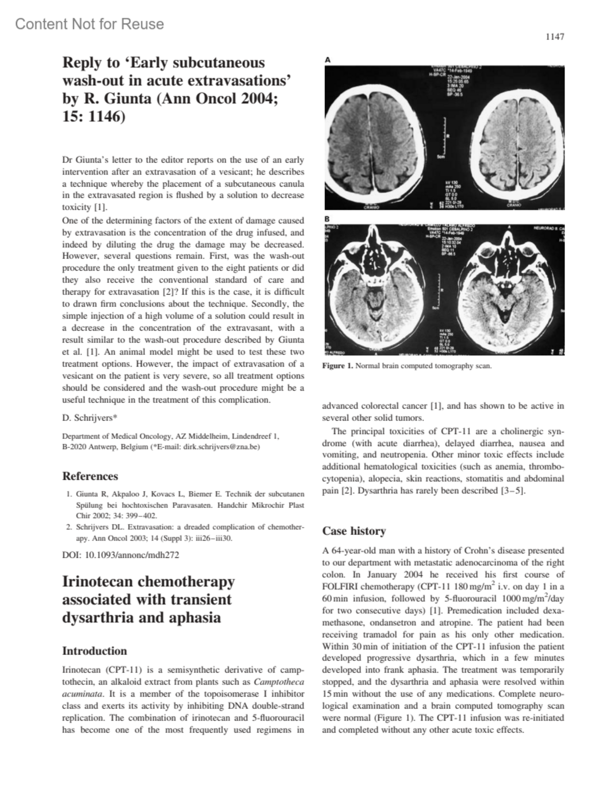 Irinotecan chemotherapy associated with transient dysarthria and aphasia